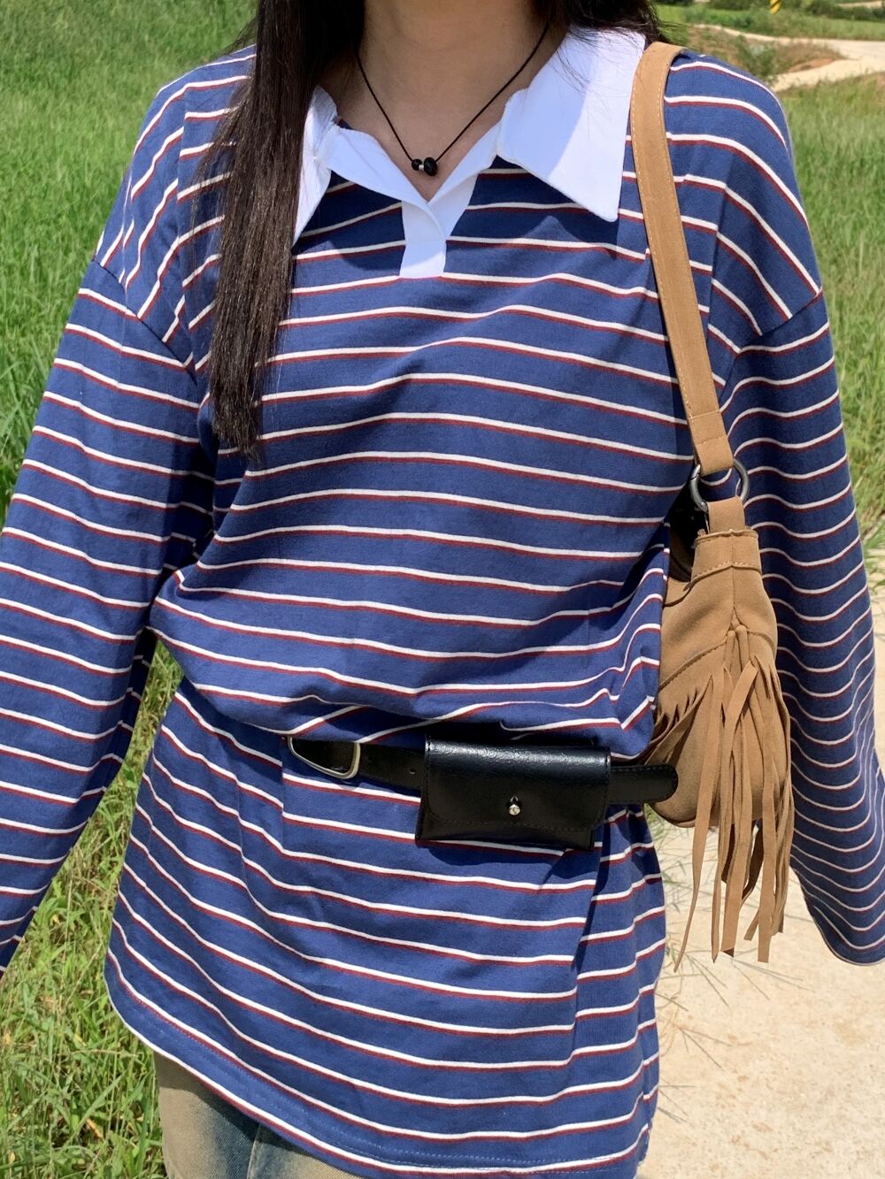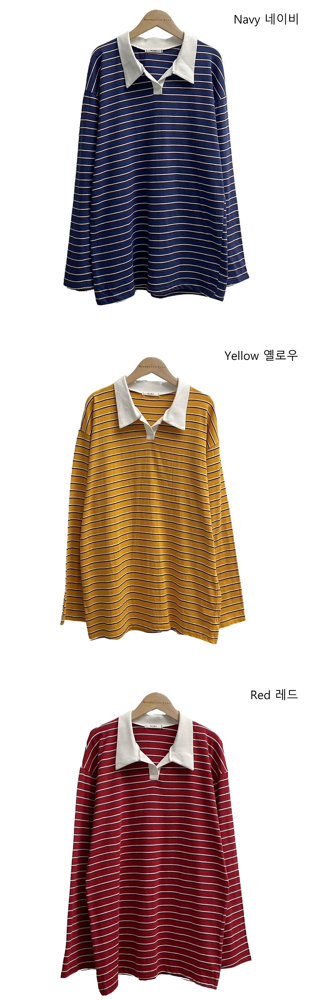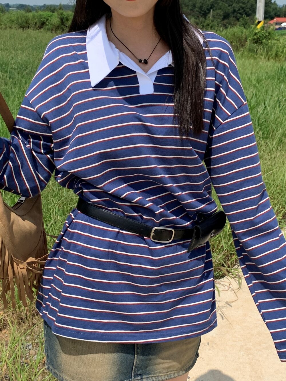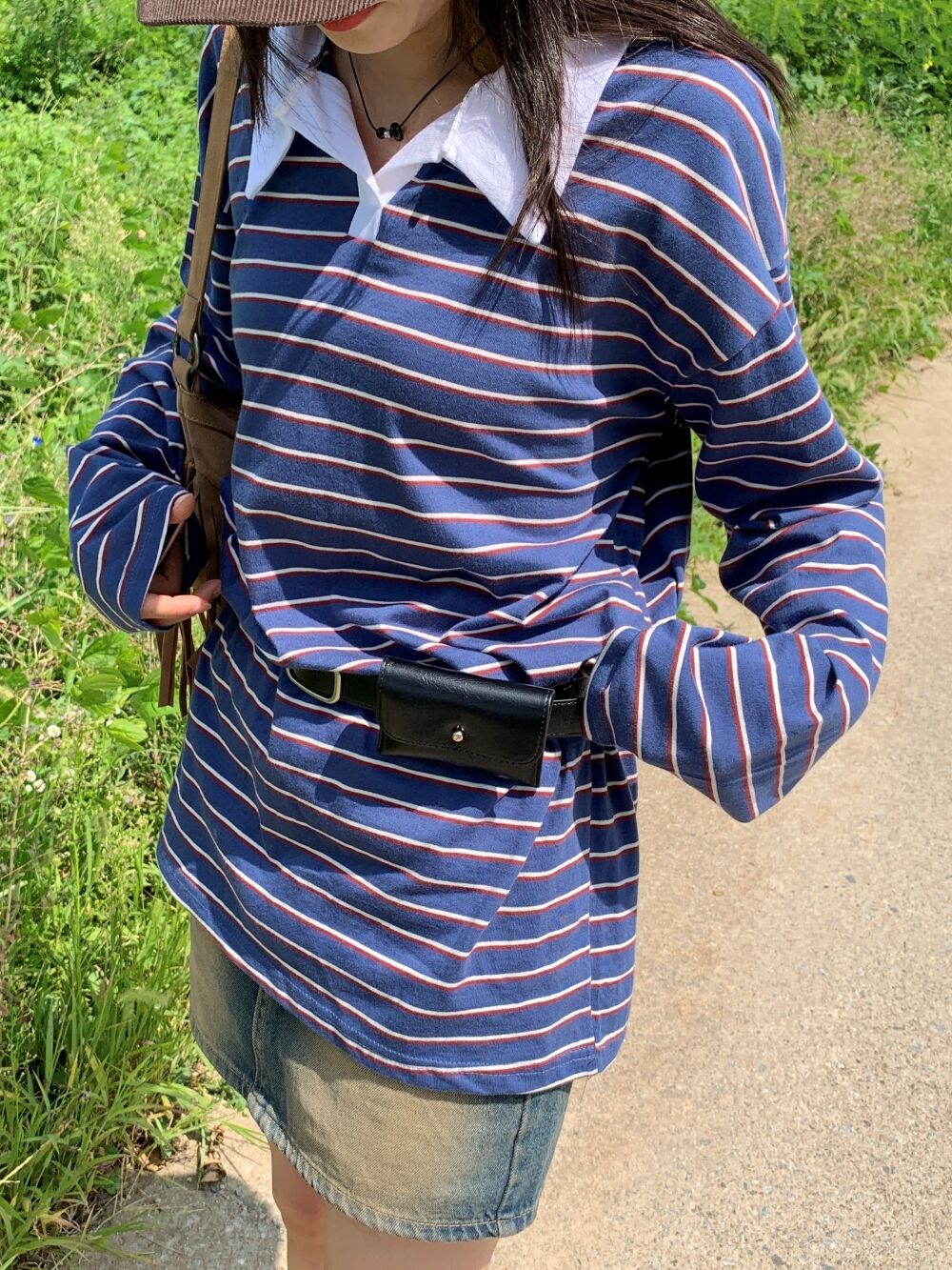 [3color]カジュアルカラーストライプ長袖Tシャツ