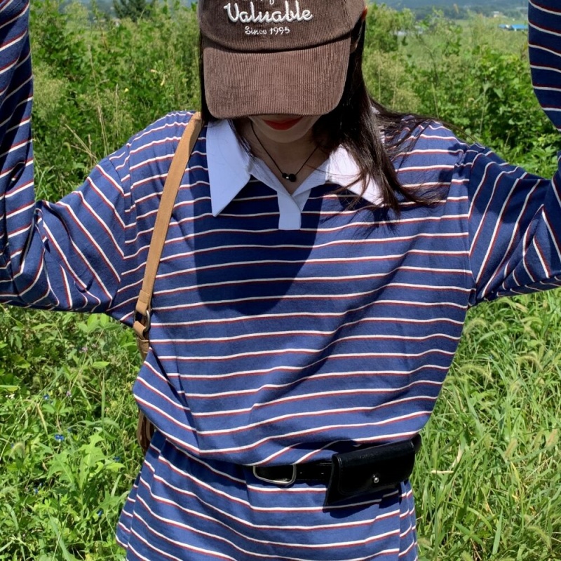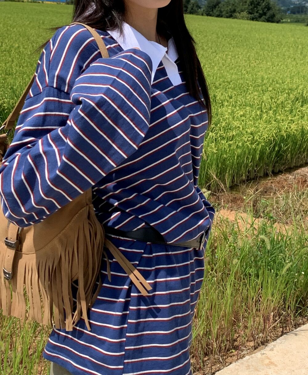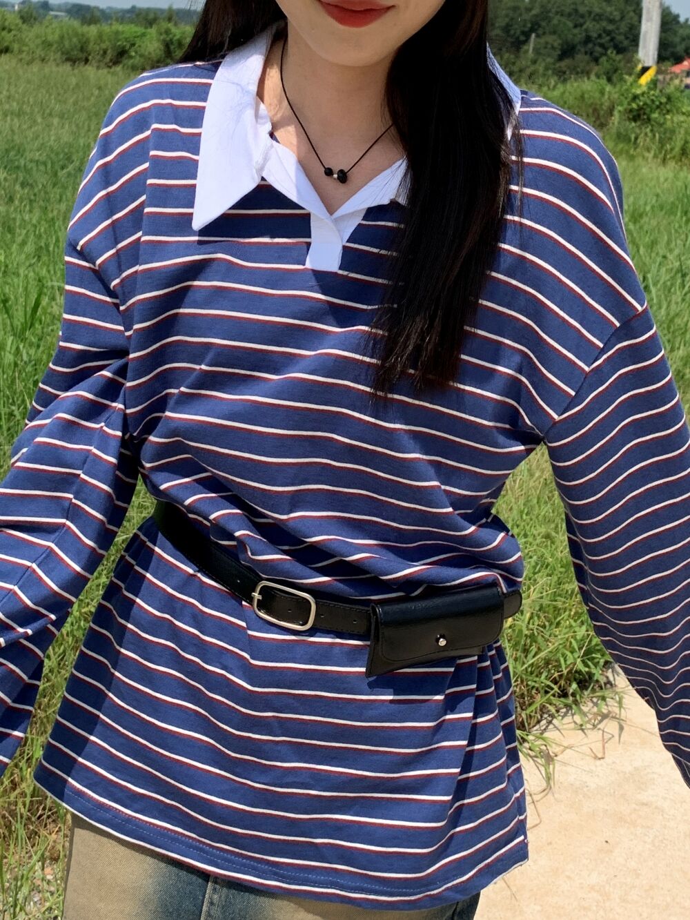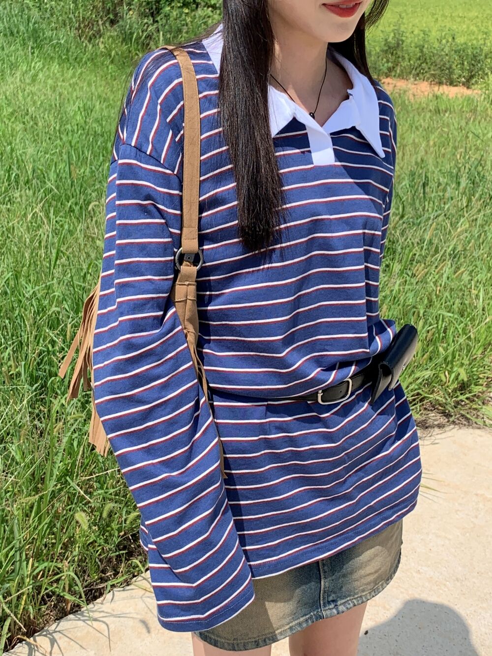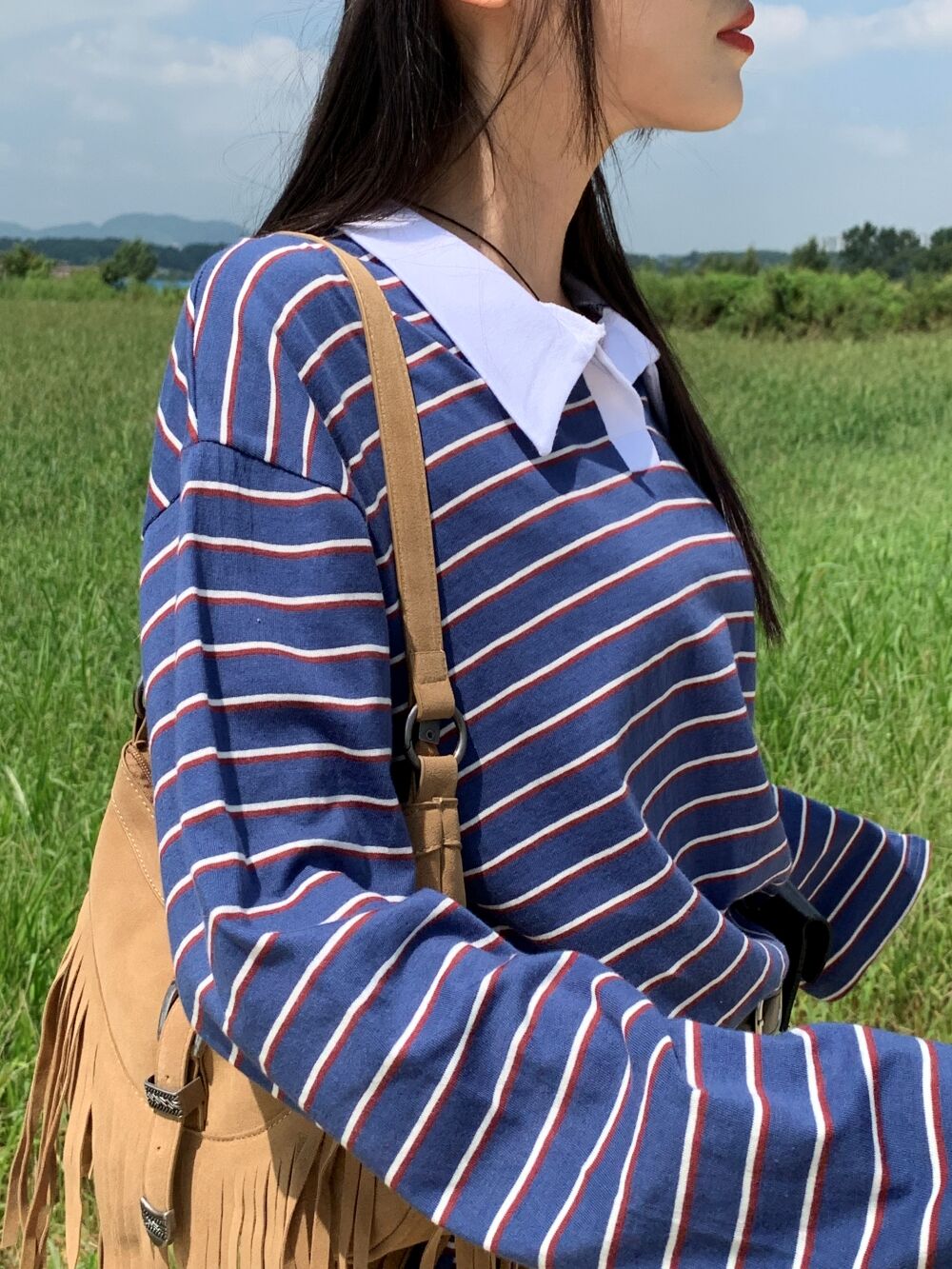 [3color]カジュアルカラーストライプ長袖Tシャツ