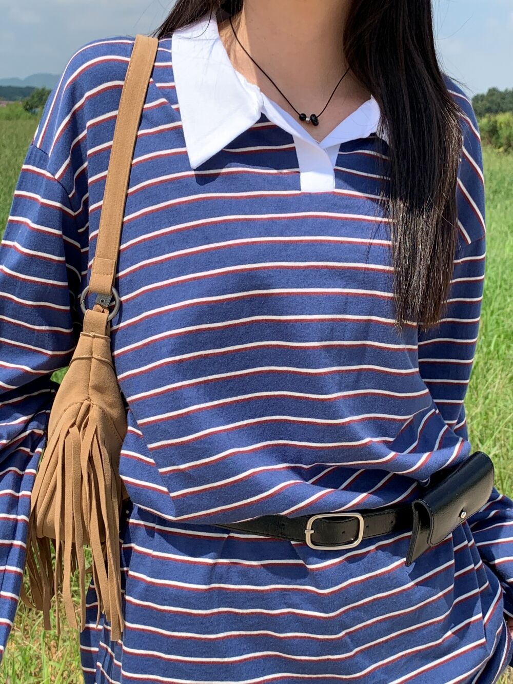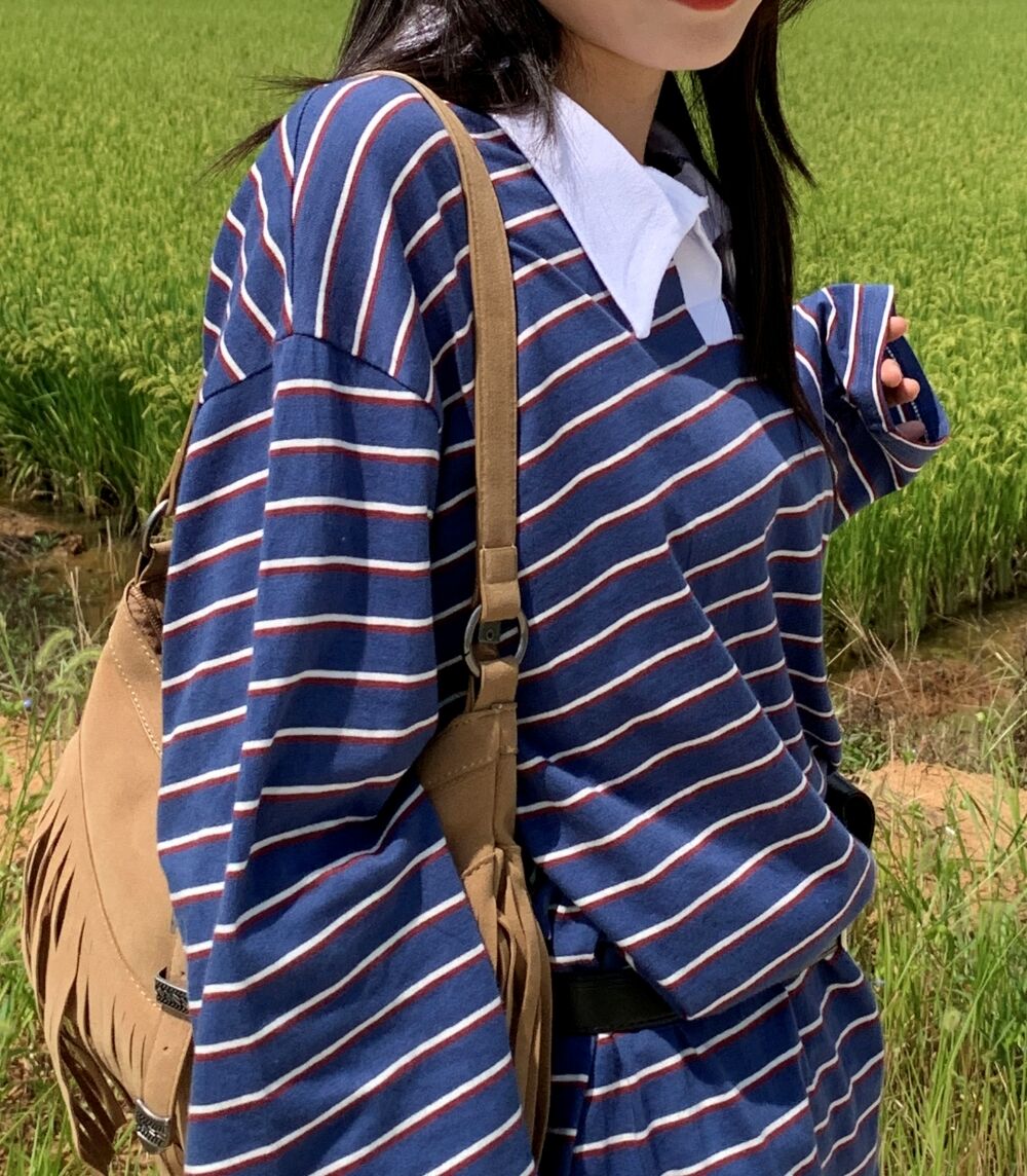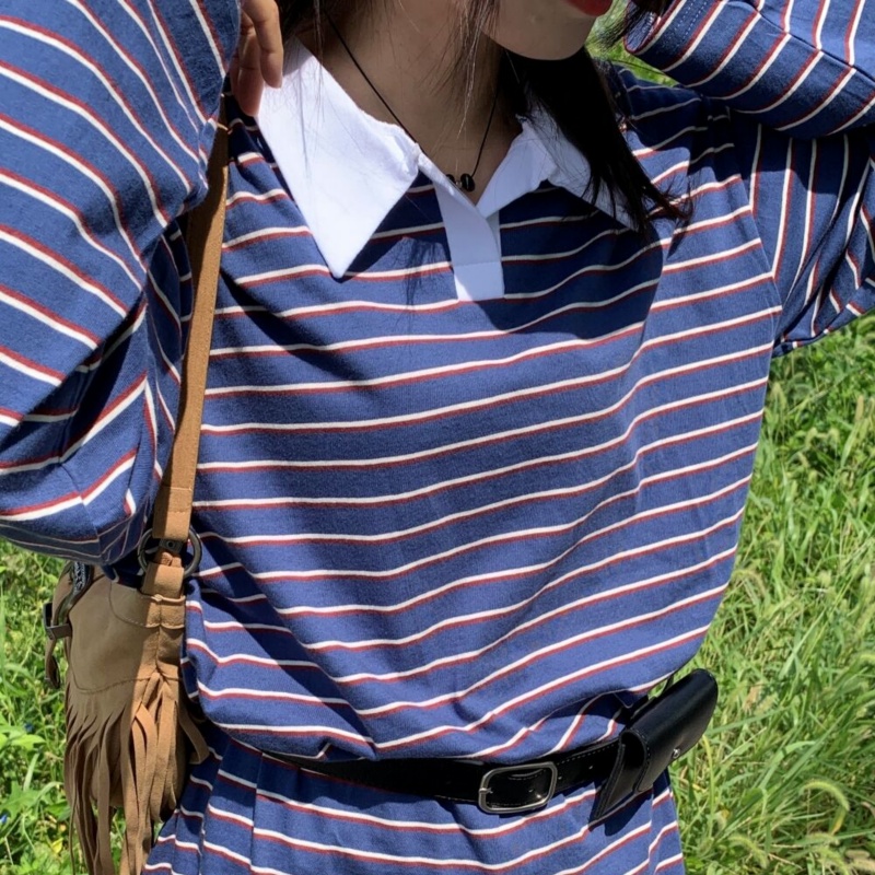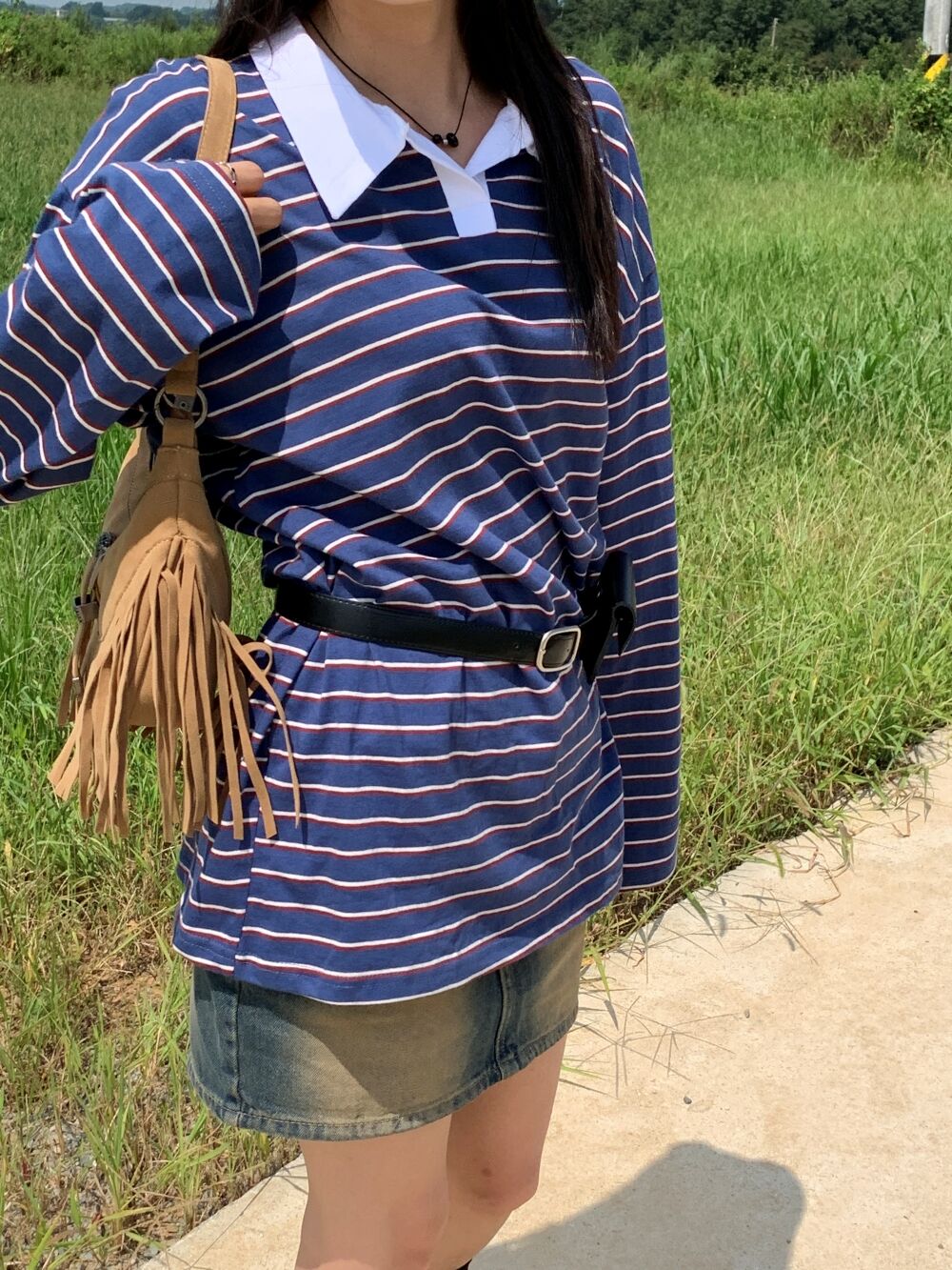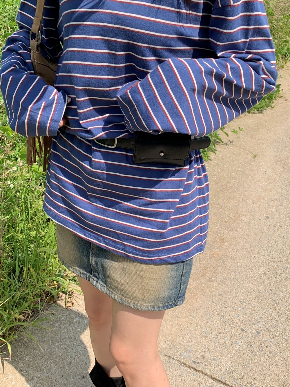 [3color]カジュアルカラーストライプ長袖Tシャツ