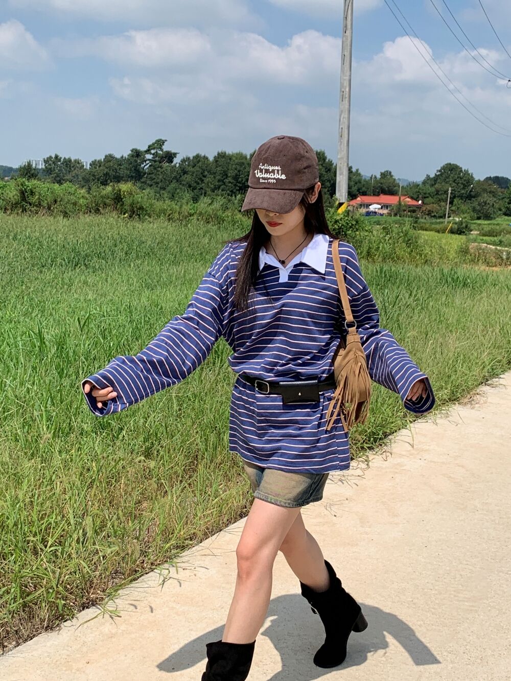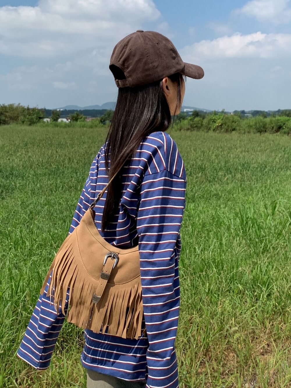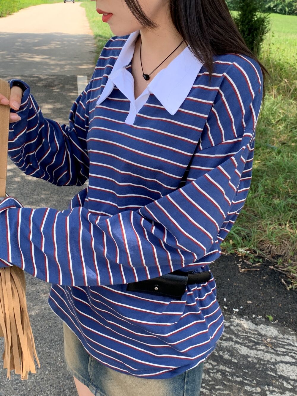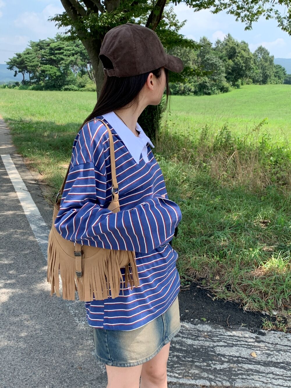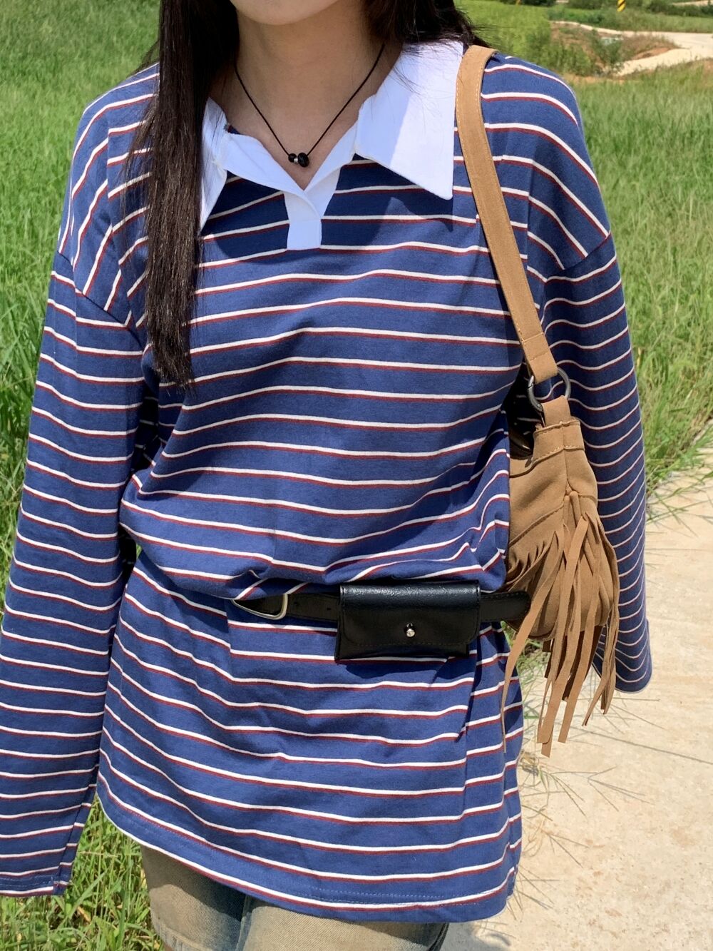 [3color]カジュアルカラーストライプ長袖Tシャツ