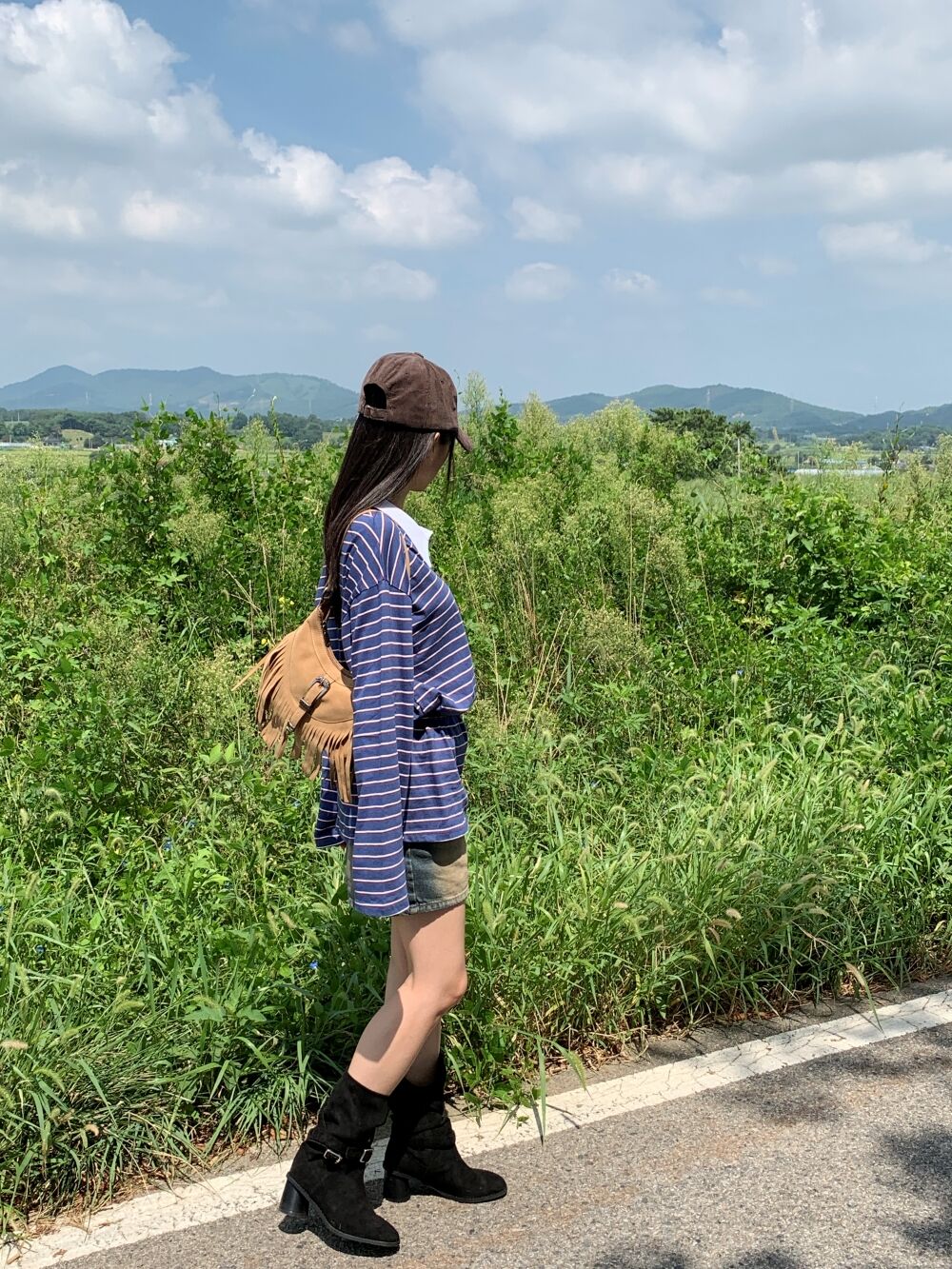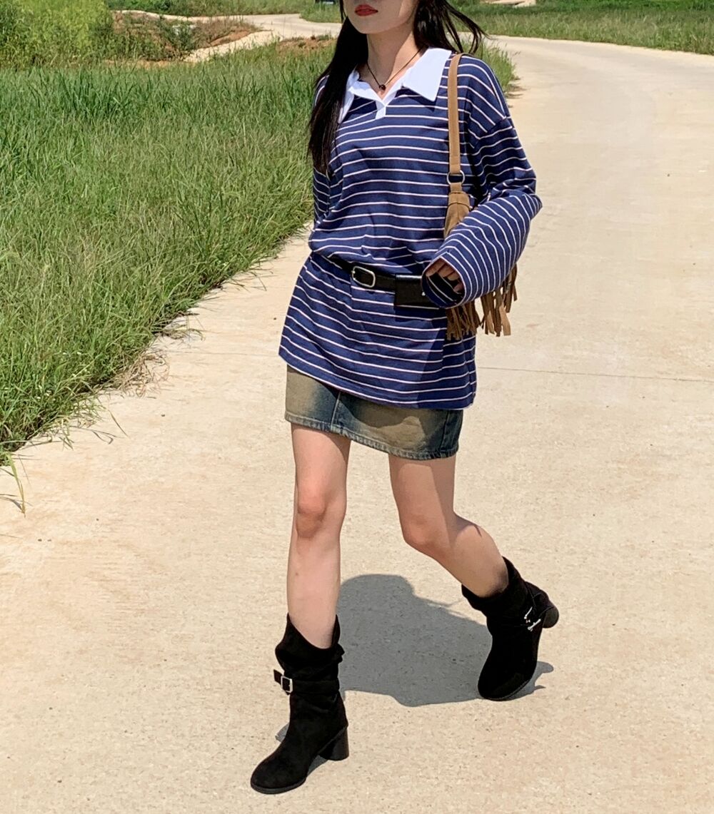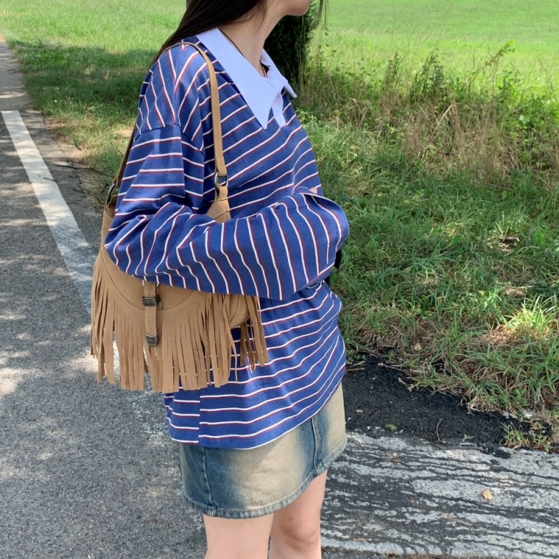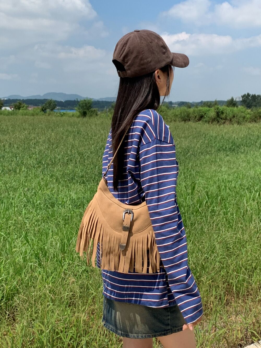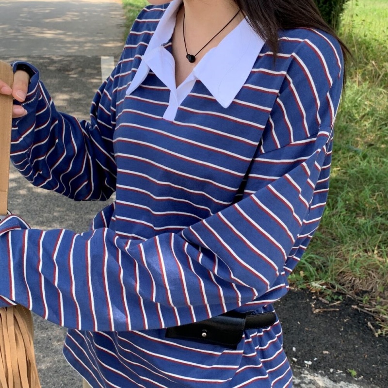 [3color]カジュアルカラーストライプ長袖Tシャツ