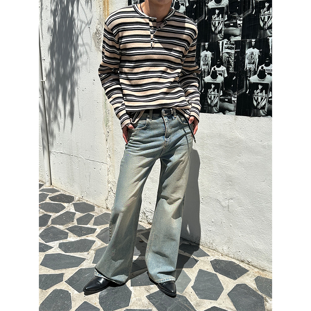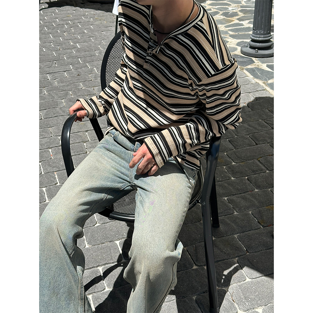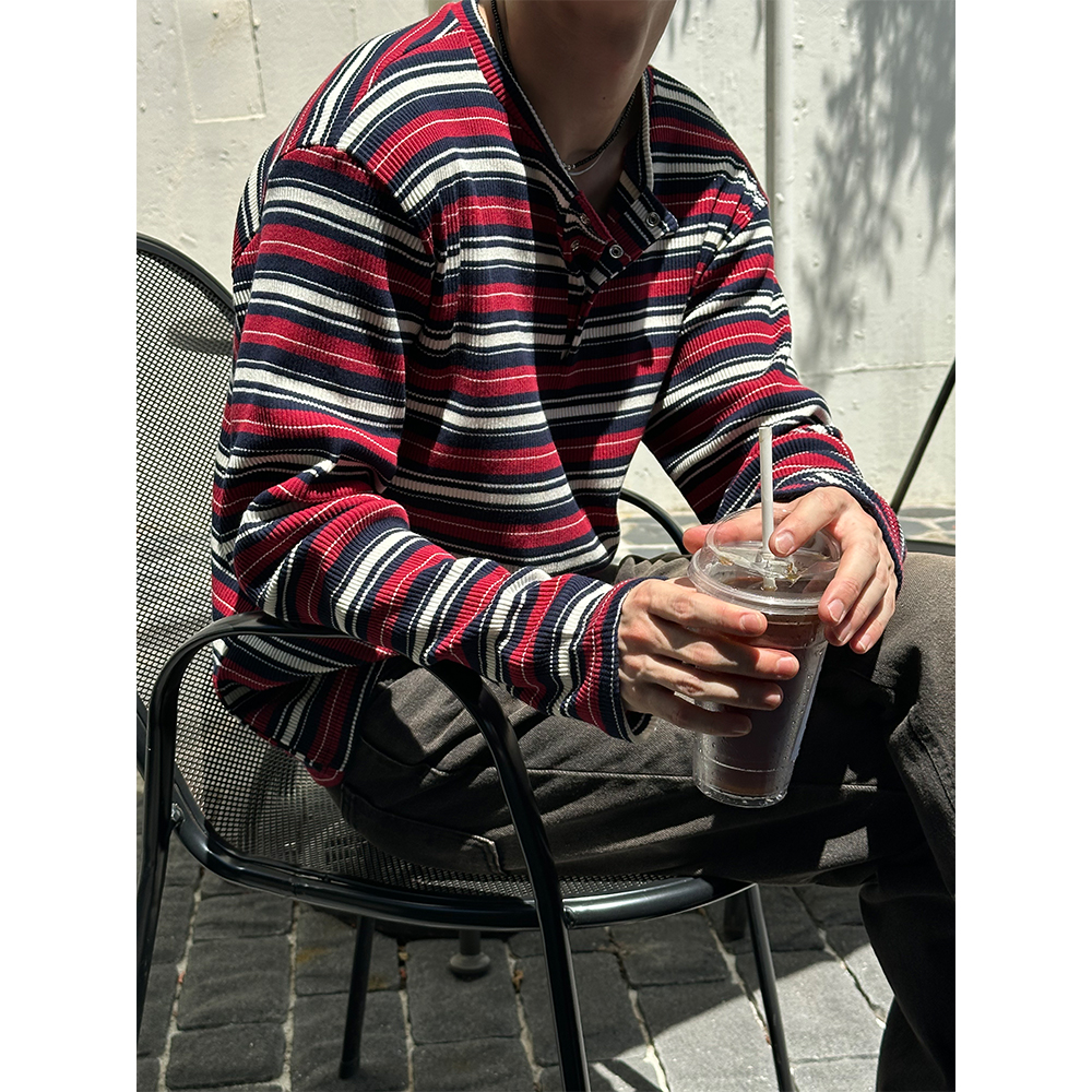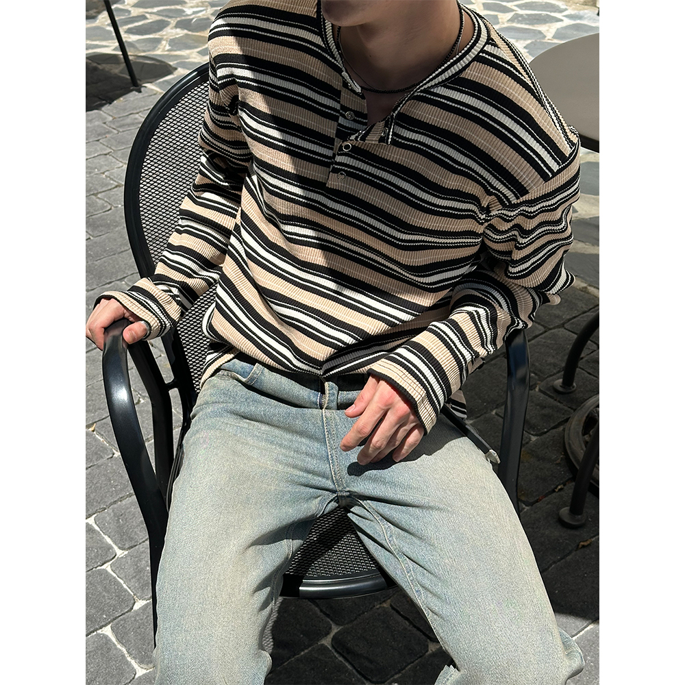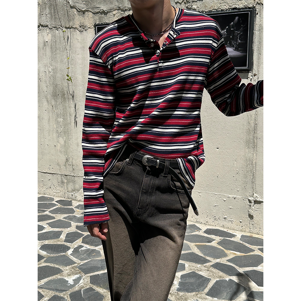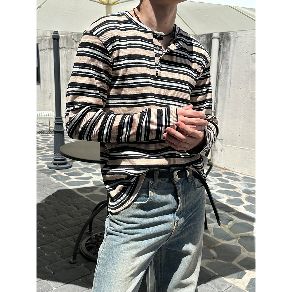 [F/W] Multi stripe henry neck long sleeves(3color)