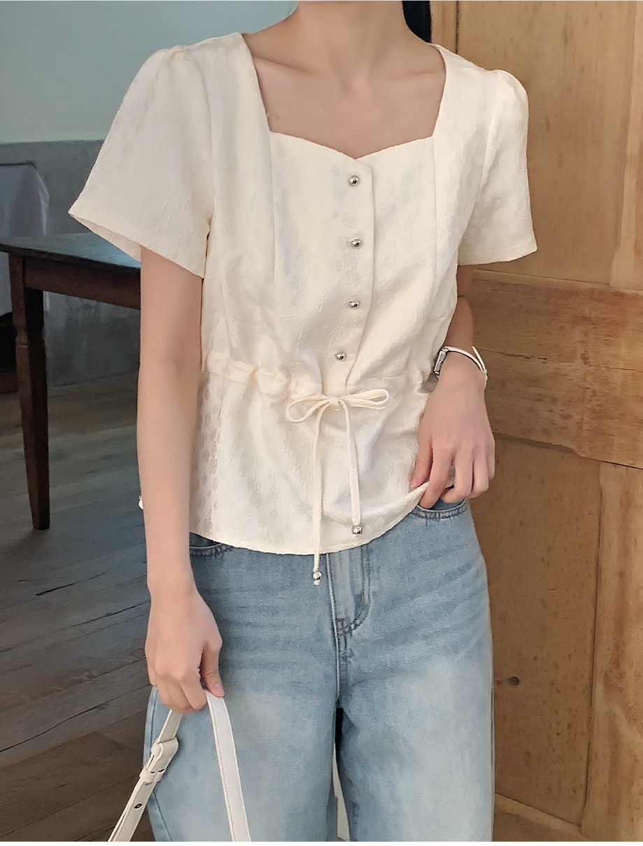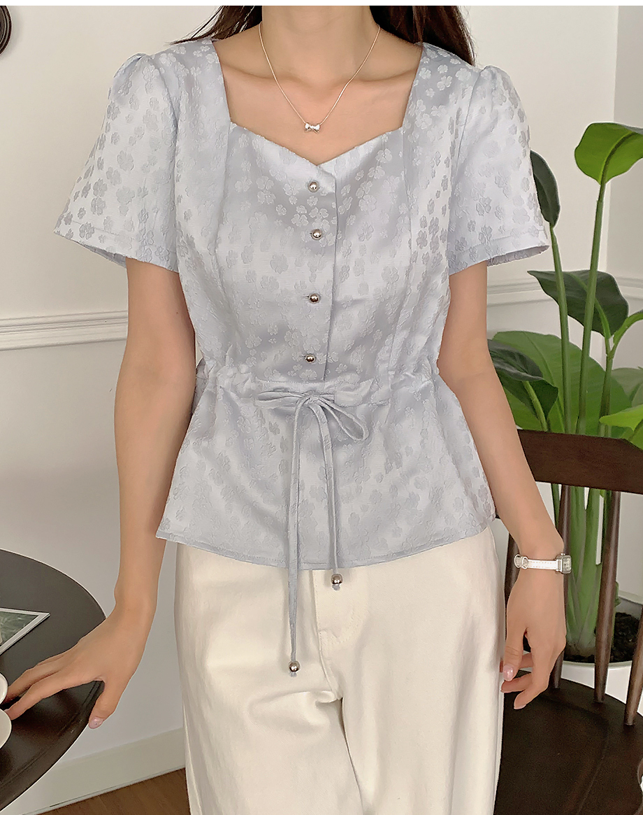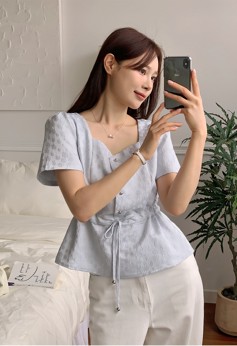 【オケージョン】フラワージャガードハートネックストリングブラウス