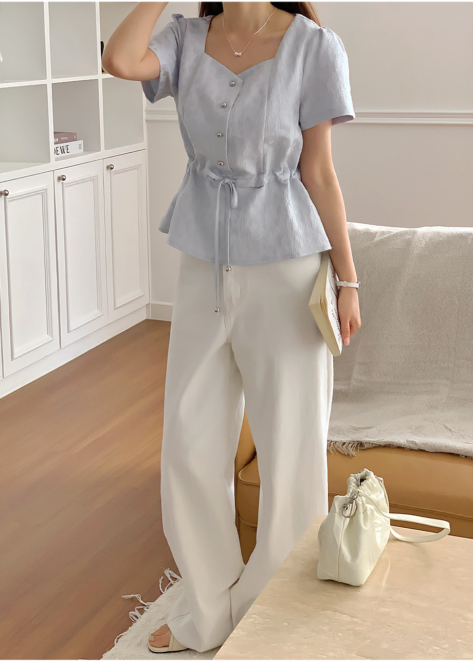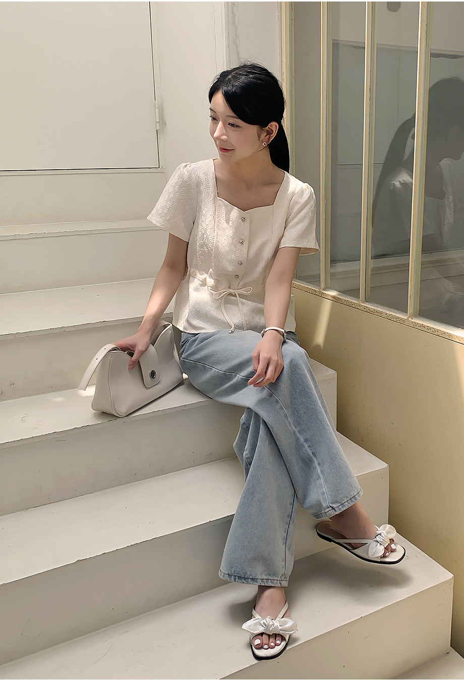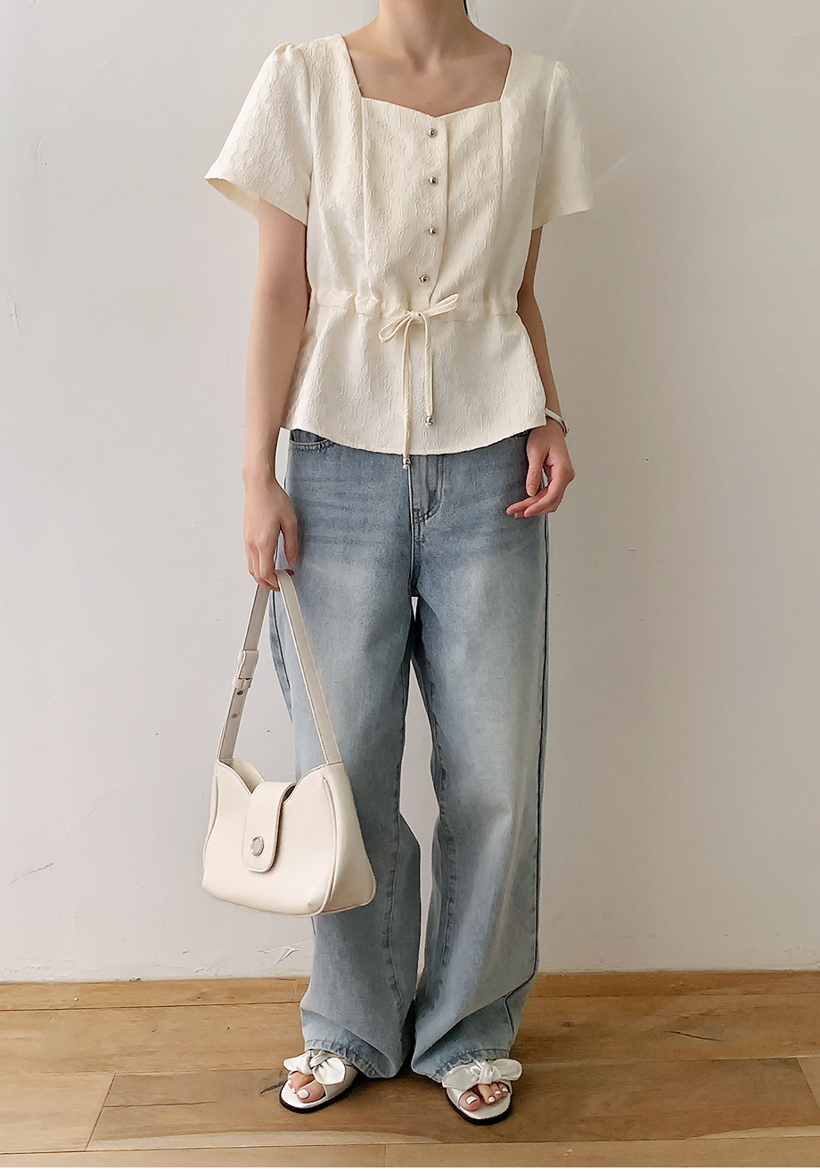【オケージョン】フラワージャガードハートネックストリングブラウス
