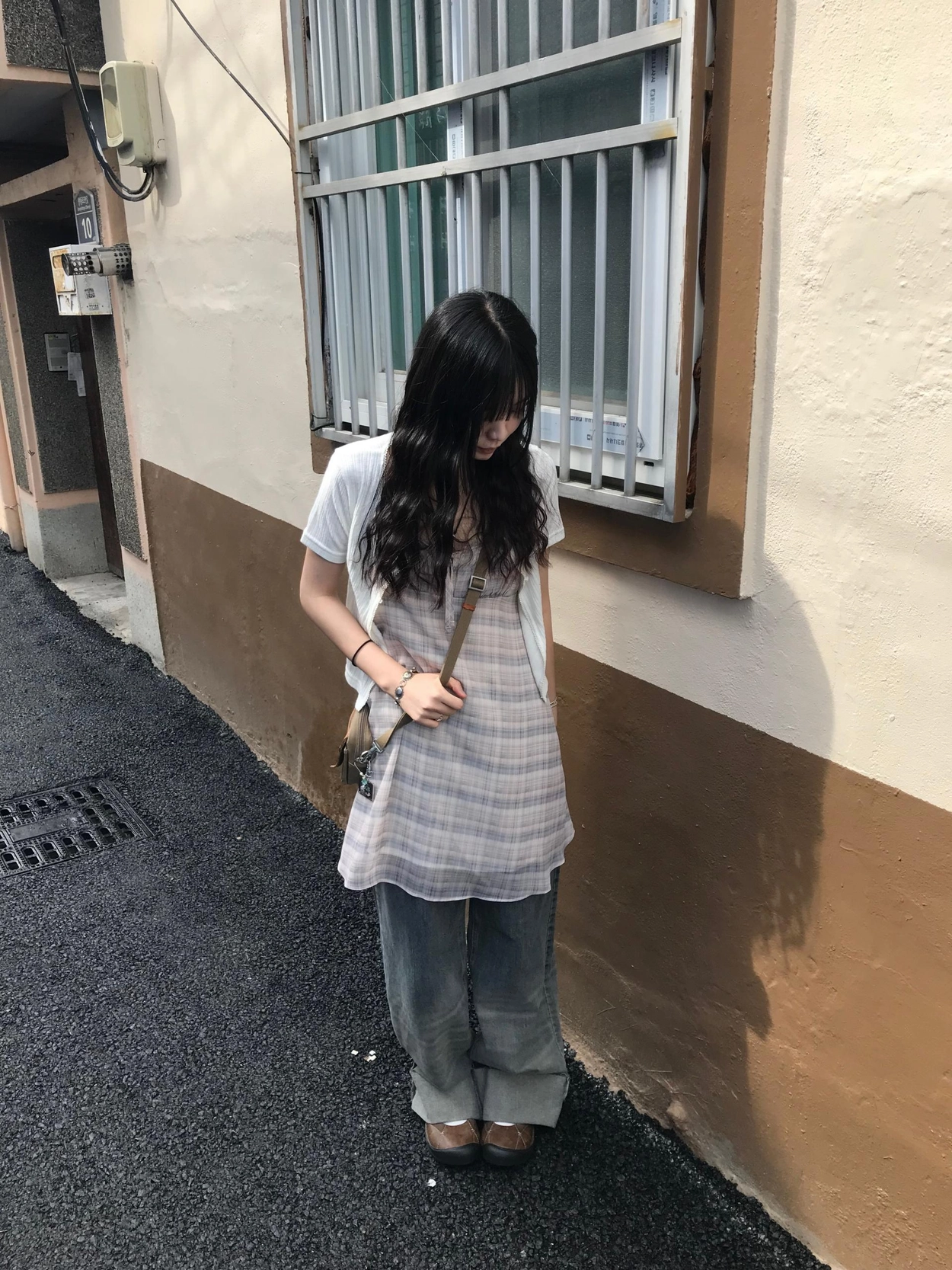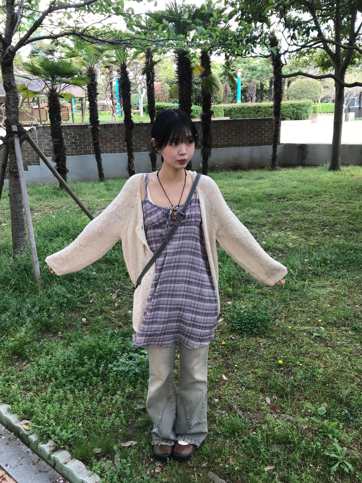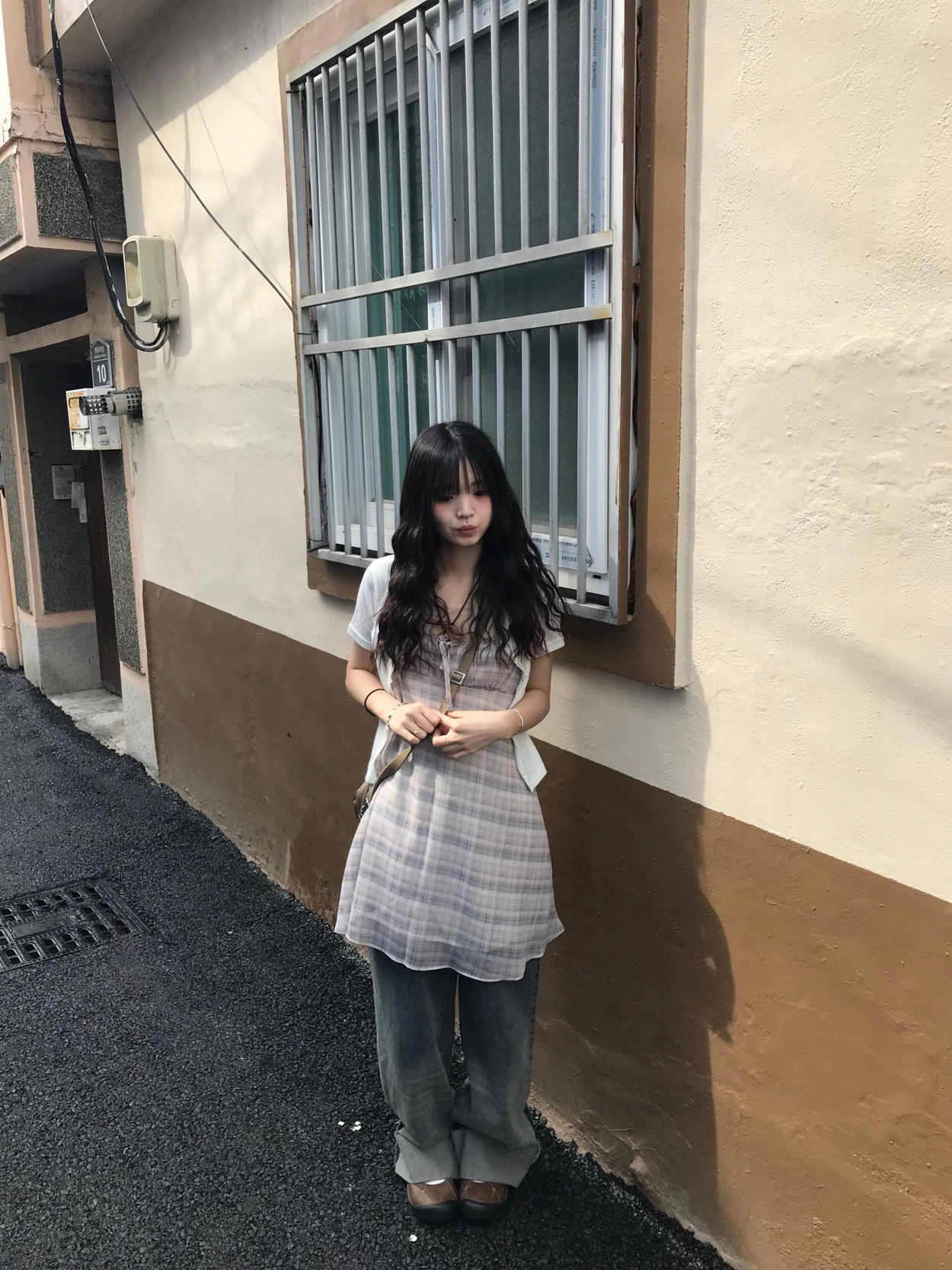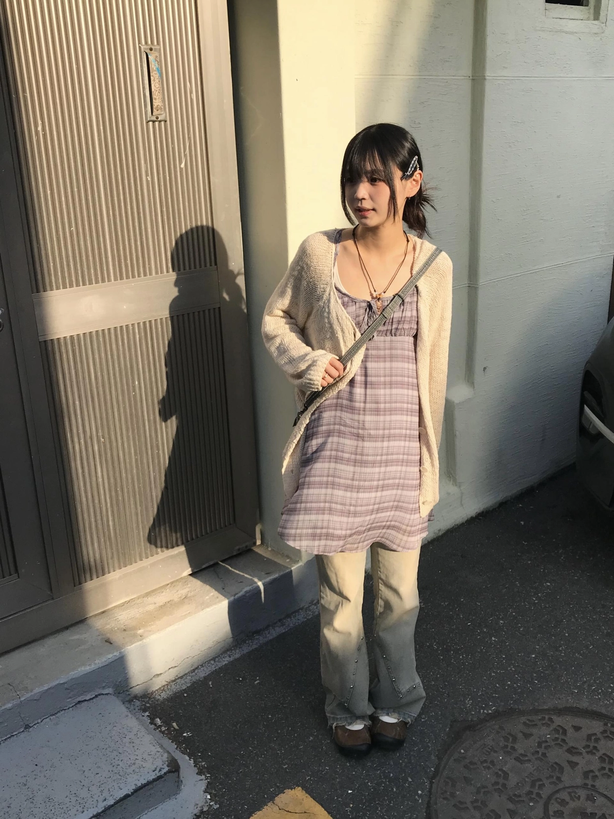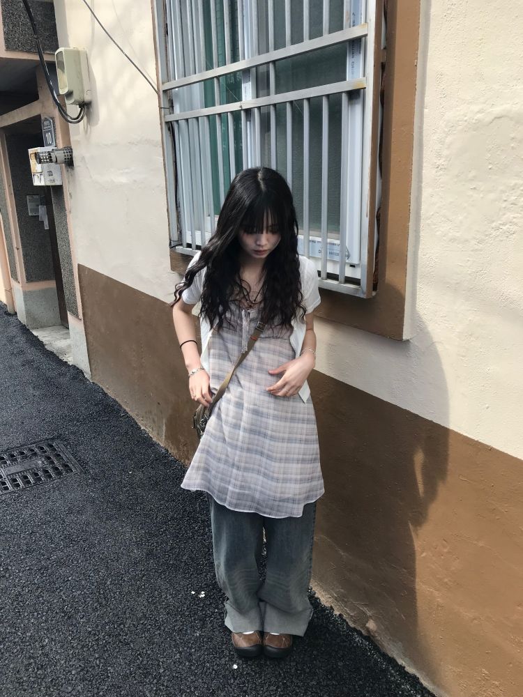 チェックノースリブワンピース