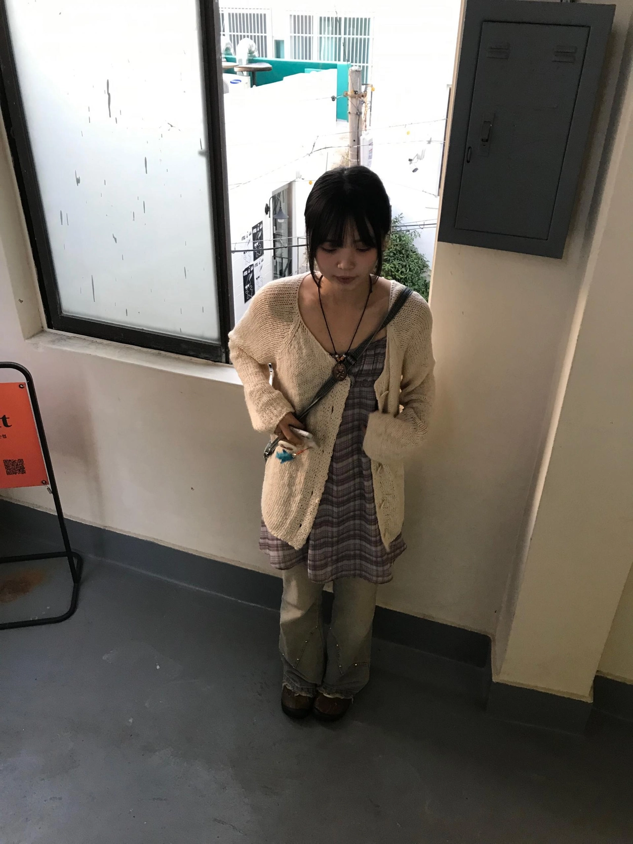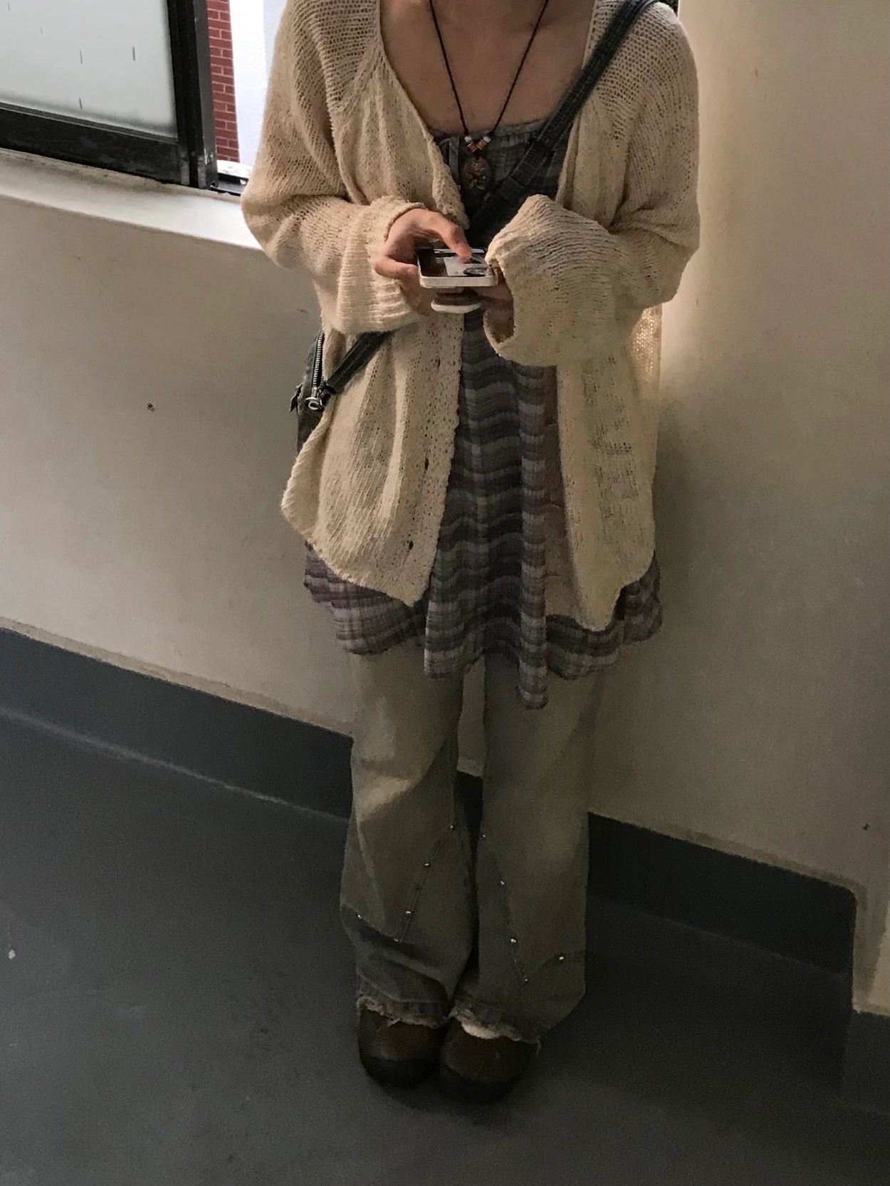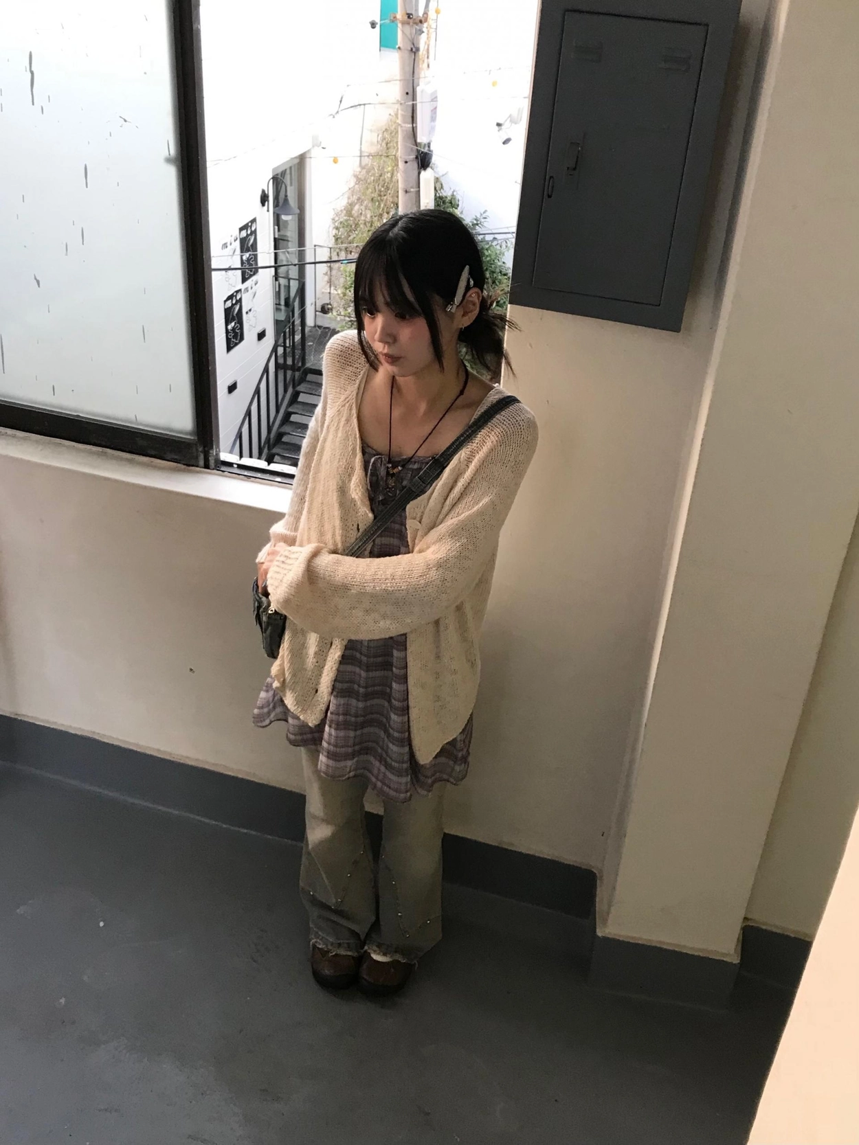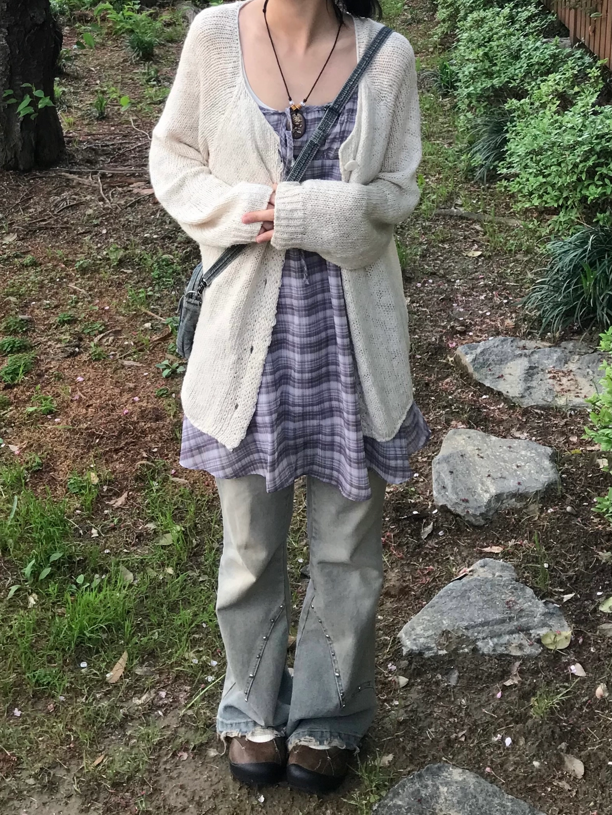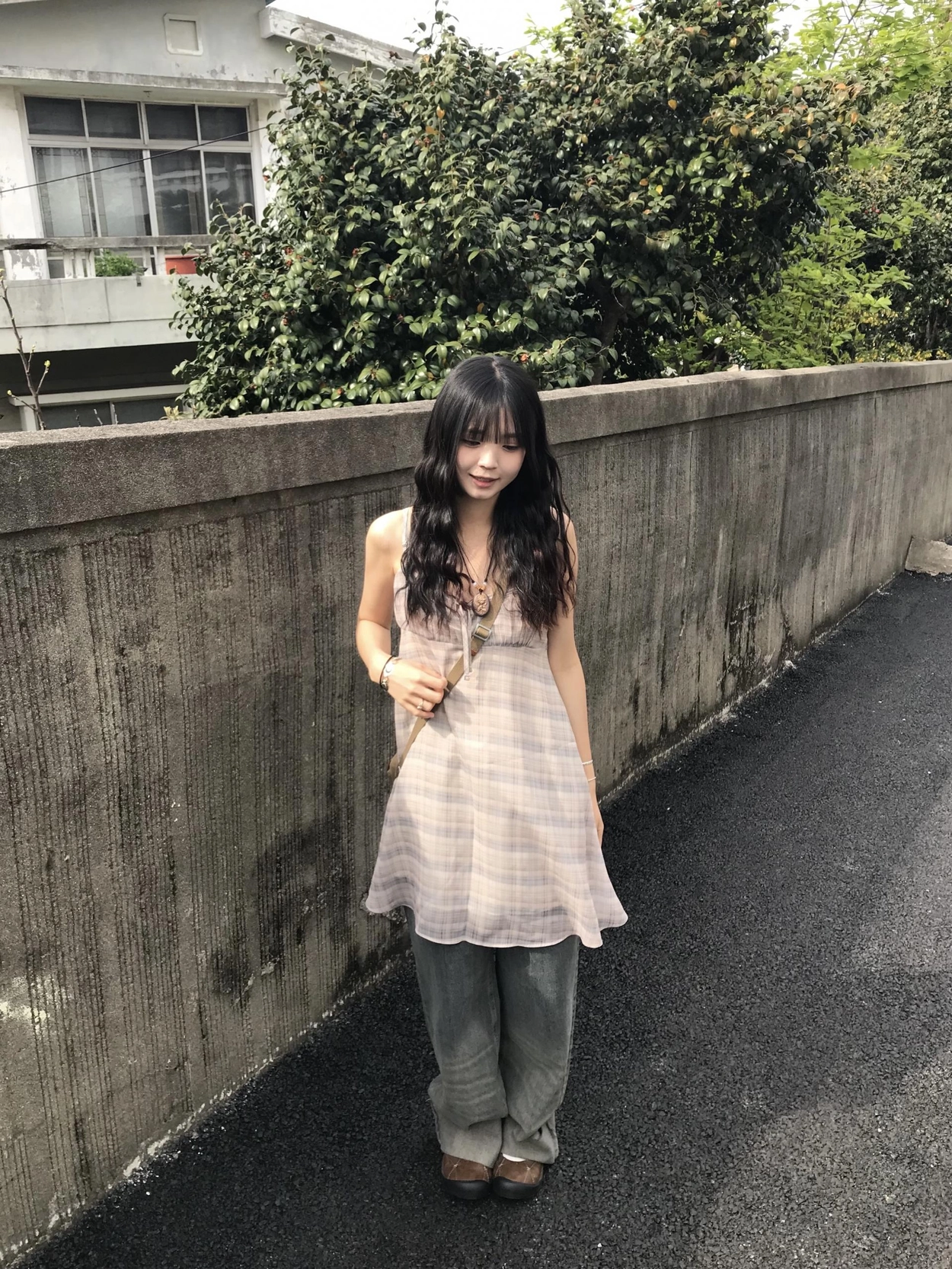 チェックノースリブワンピース