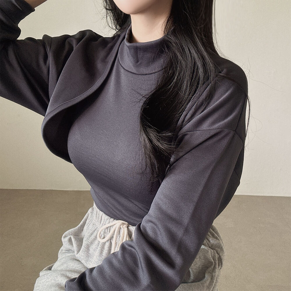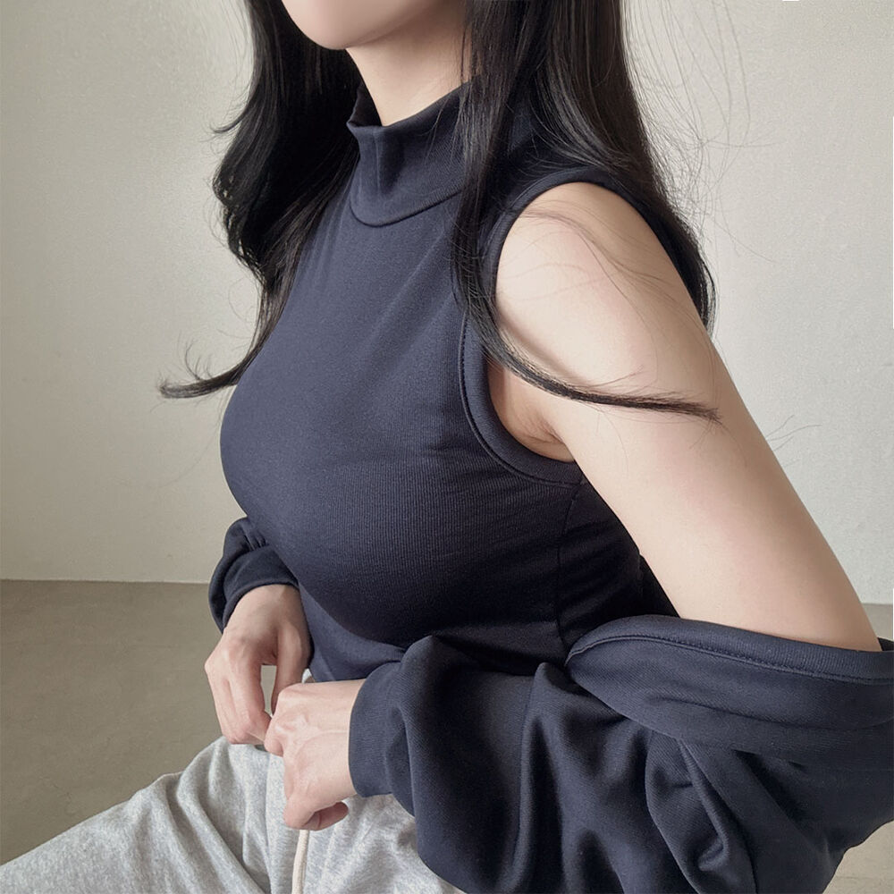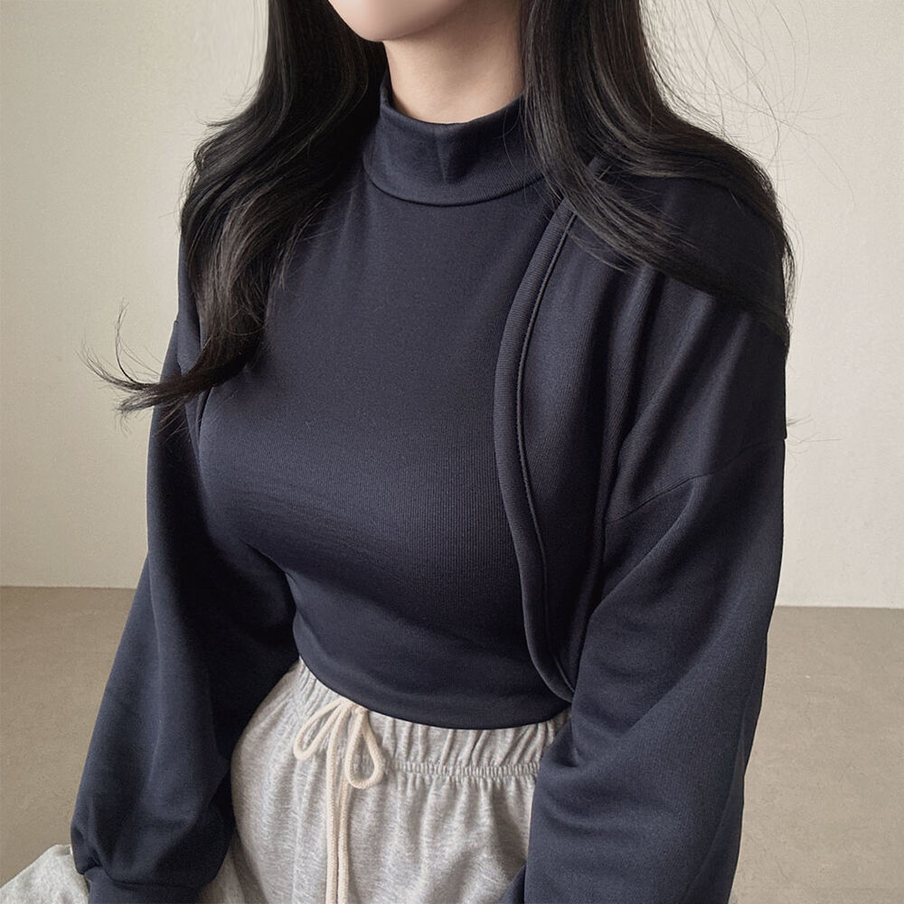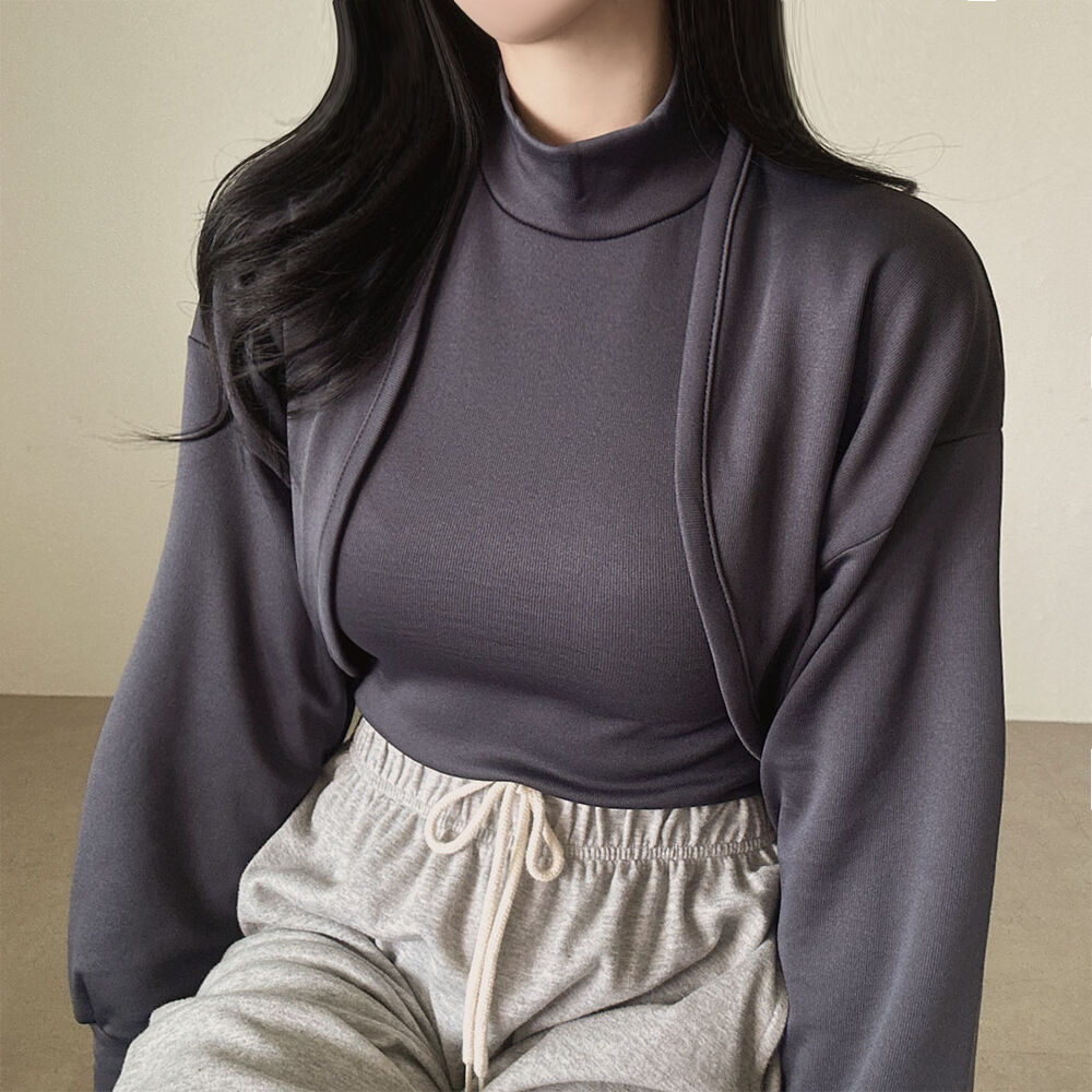 [裏地起毛/set] クロップドノースリーブ+ボレロカーディガン