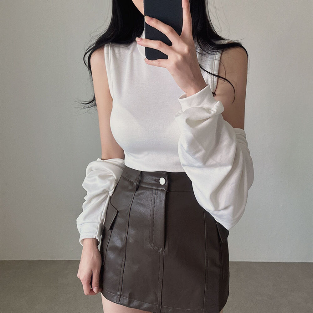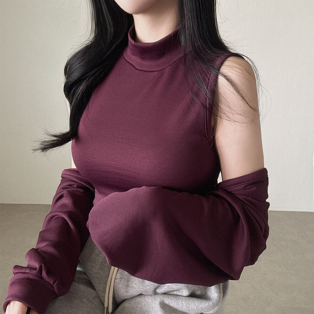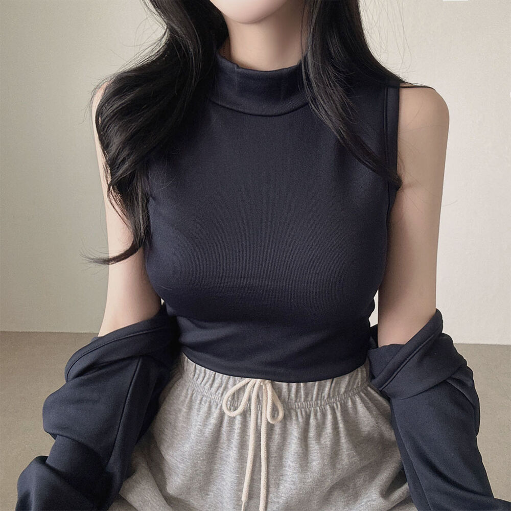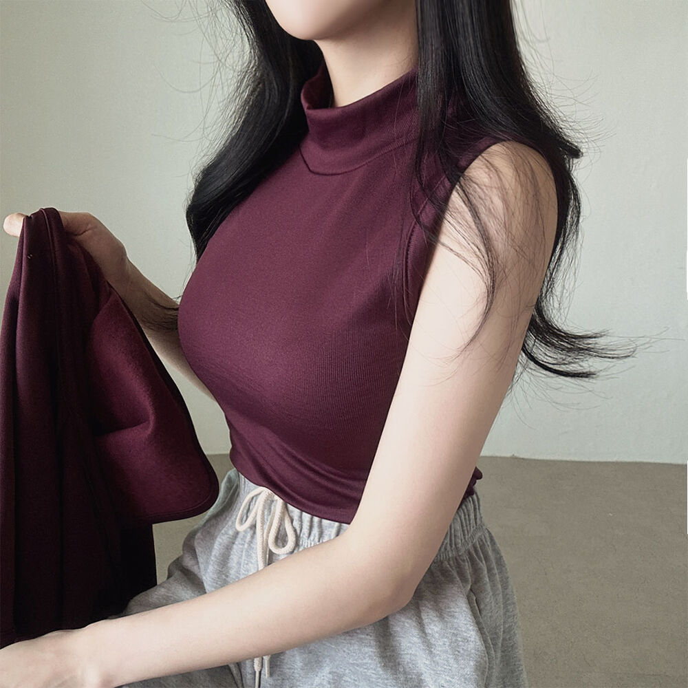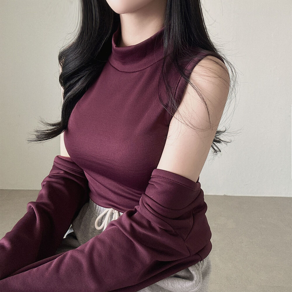 [裏地起毛/set] クロップドノースリーブ+ボレロカーディガン