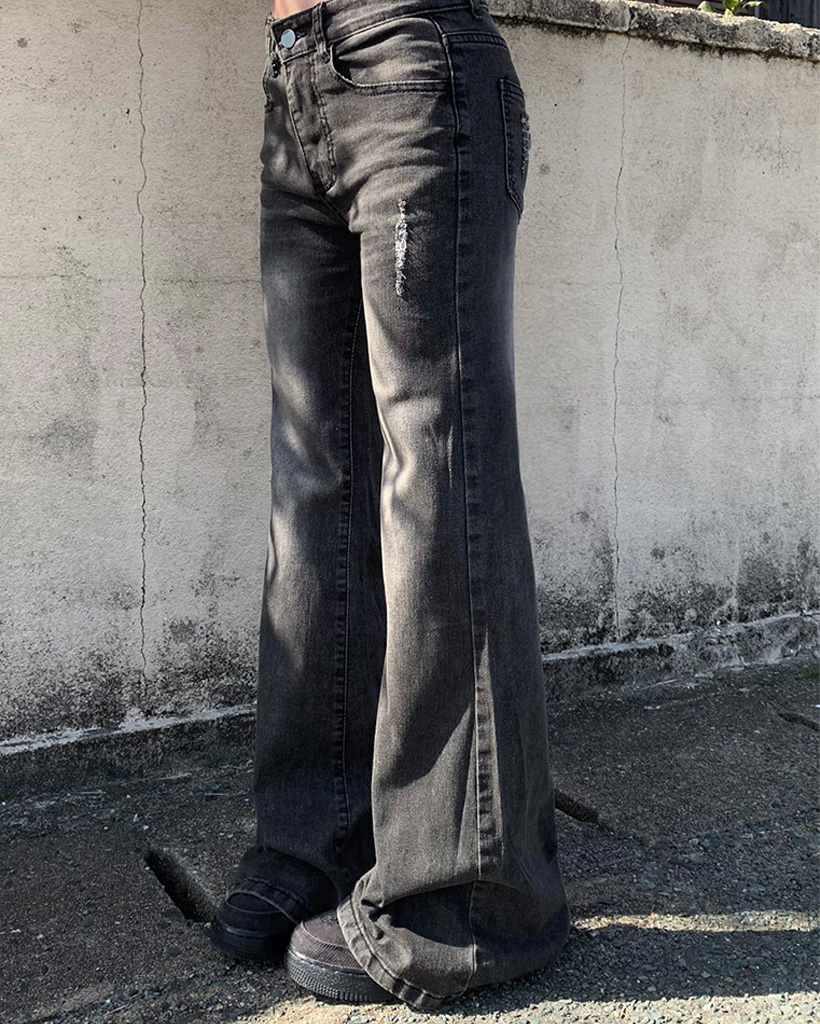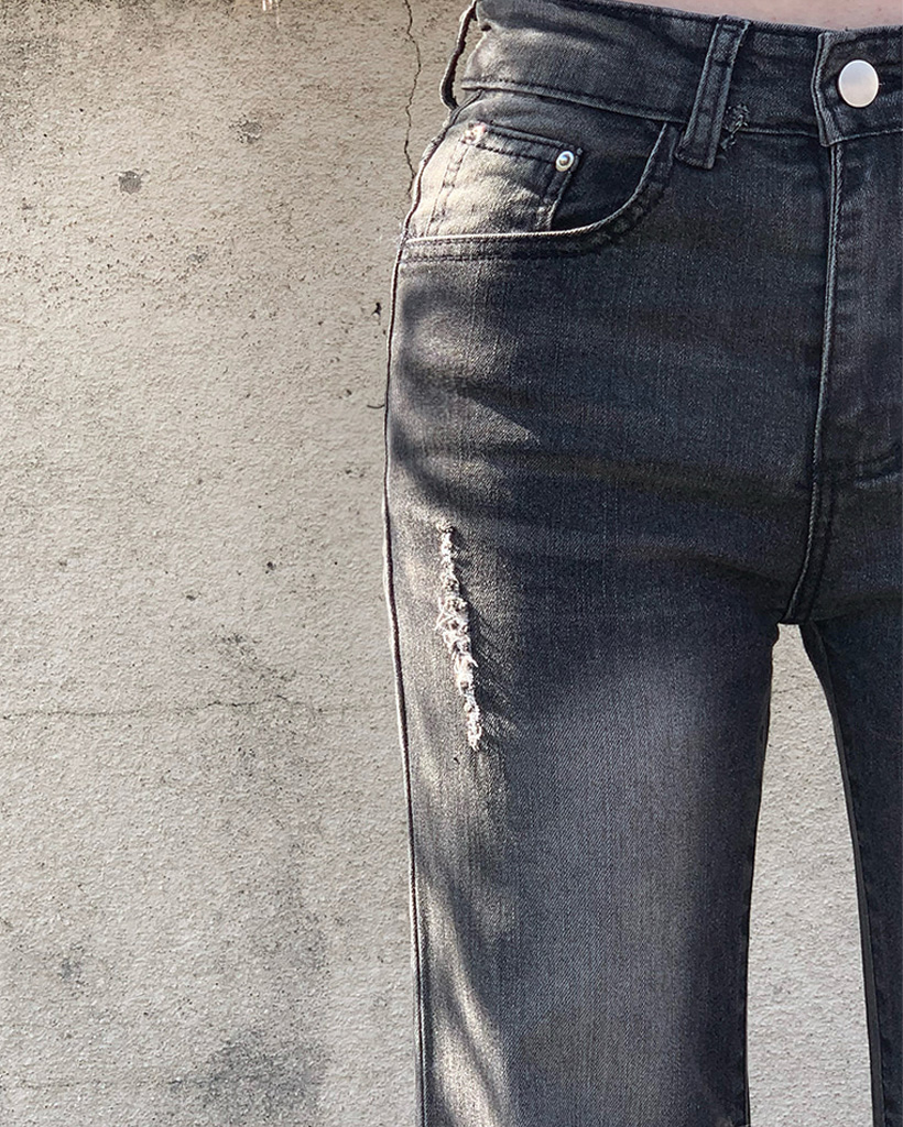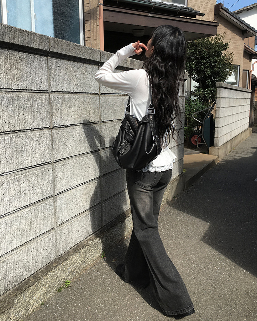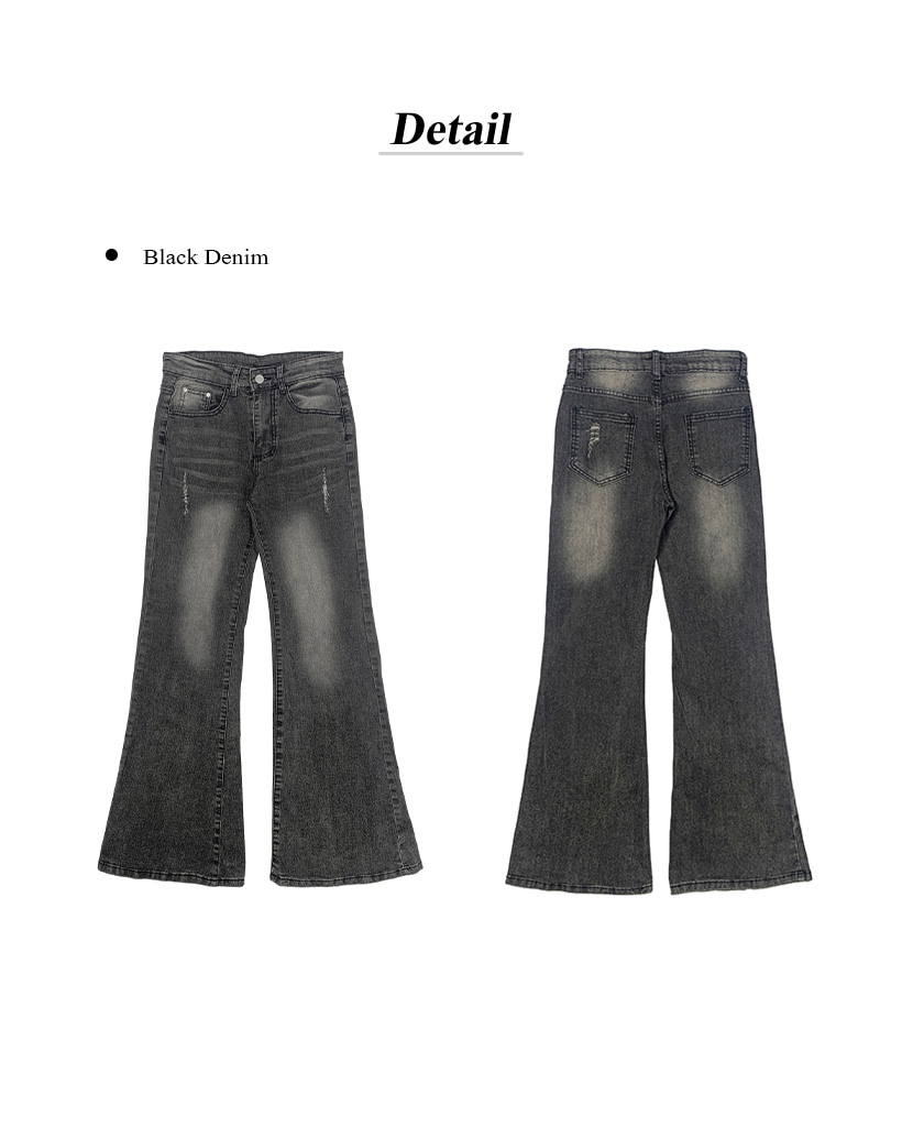 [A/M][着やせフィット] ブラックデニムウォッシングブーツカットパンツ
