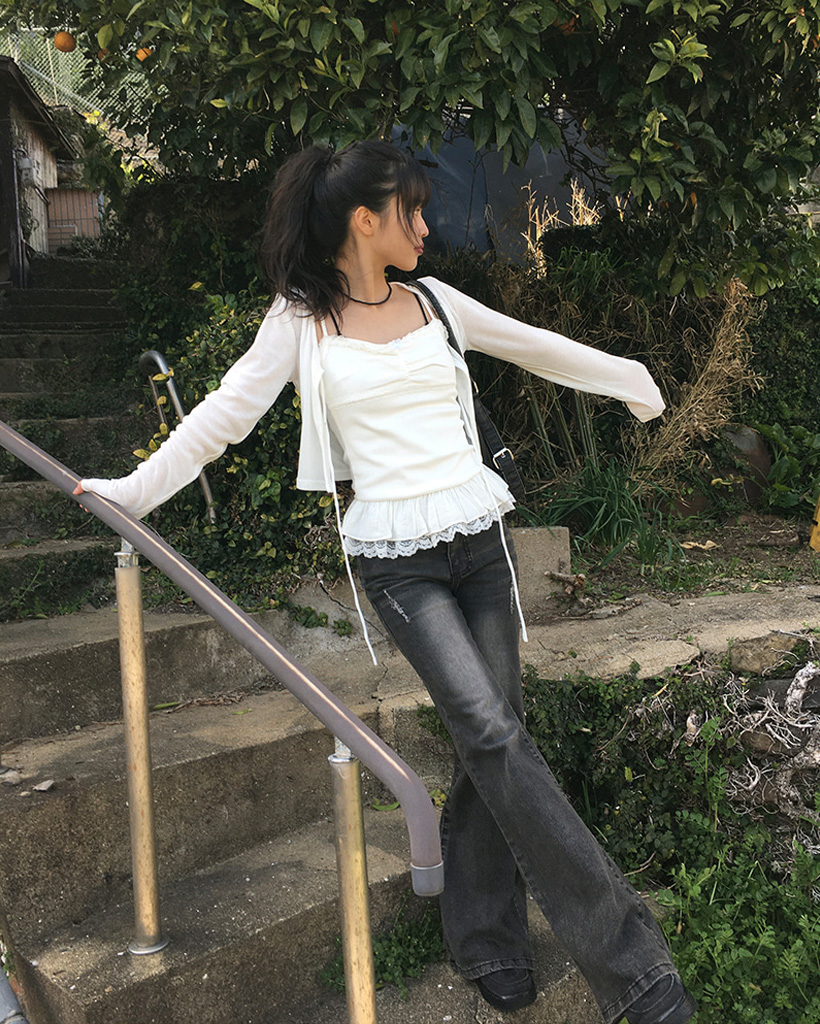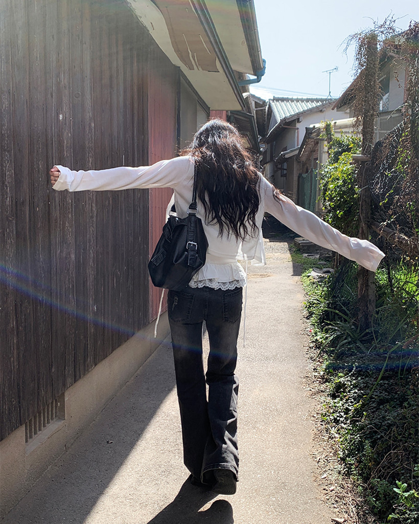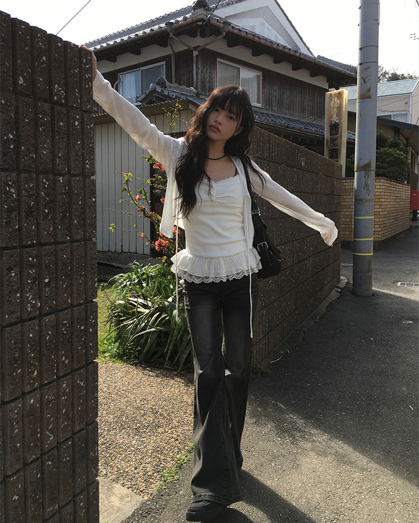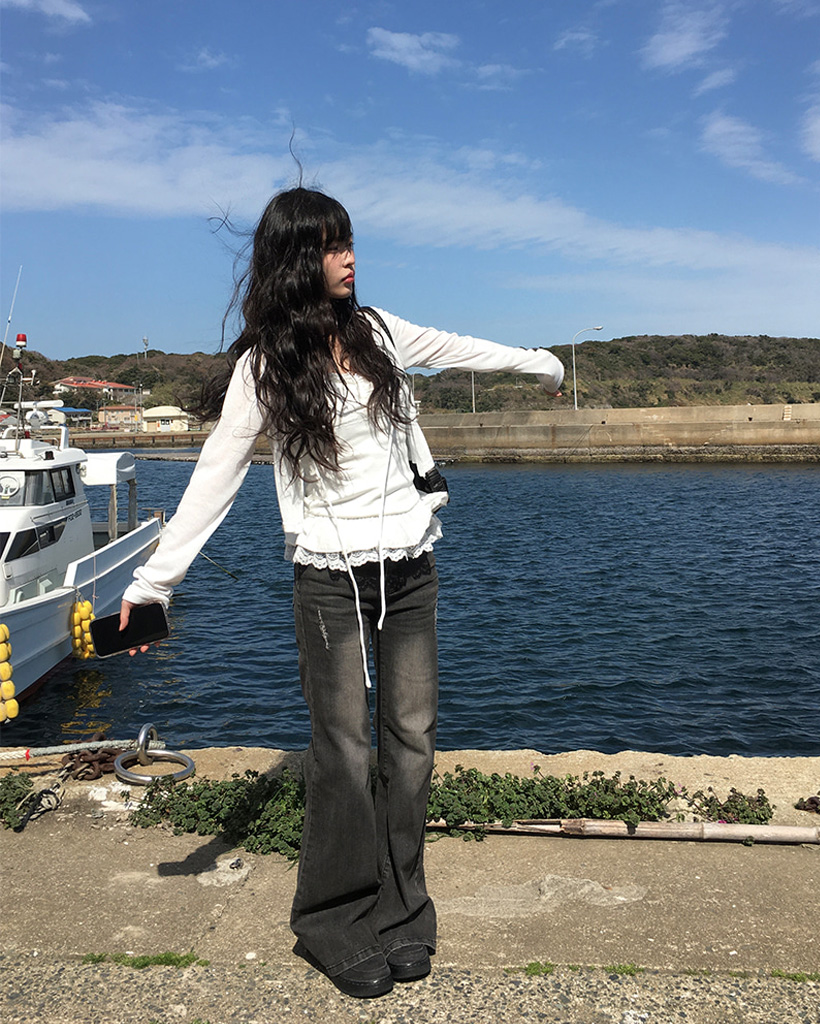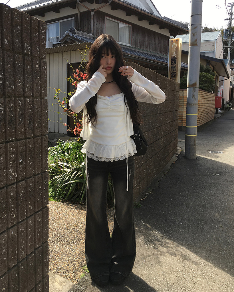 [A/M][着やせフィット] ブラックデニムウォッシングブーツカットパンツ