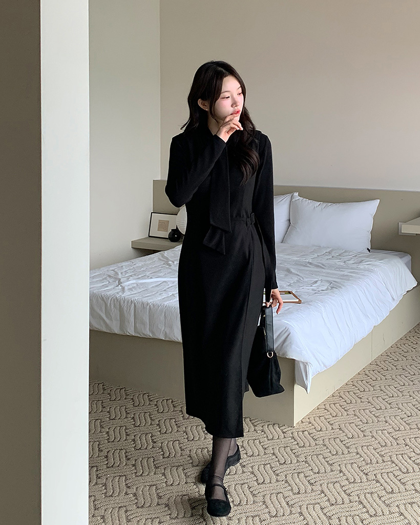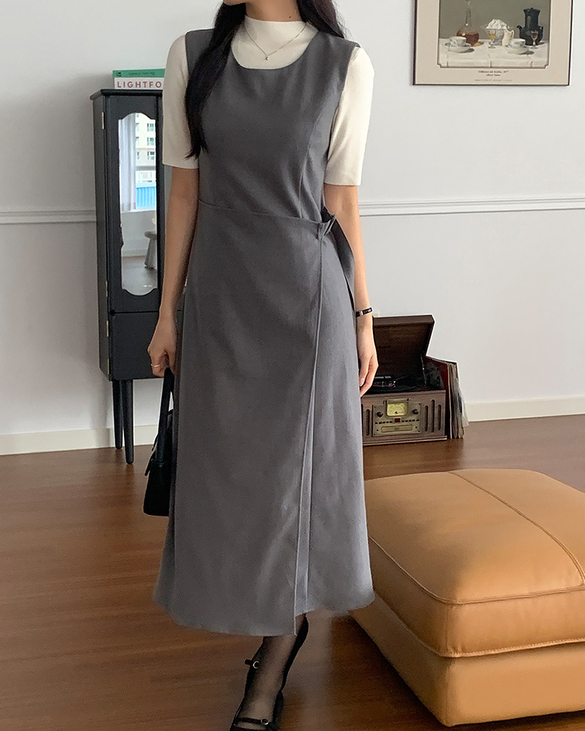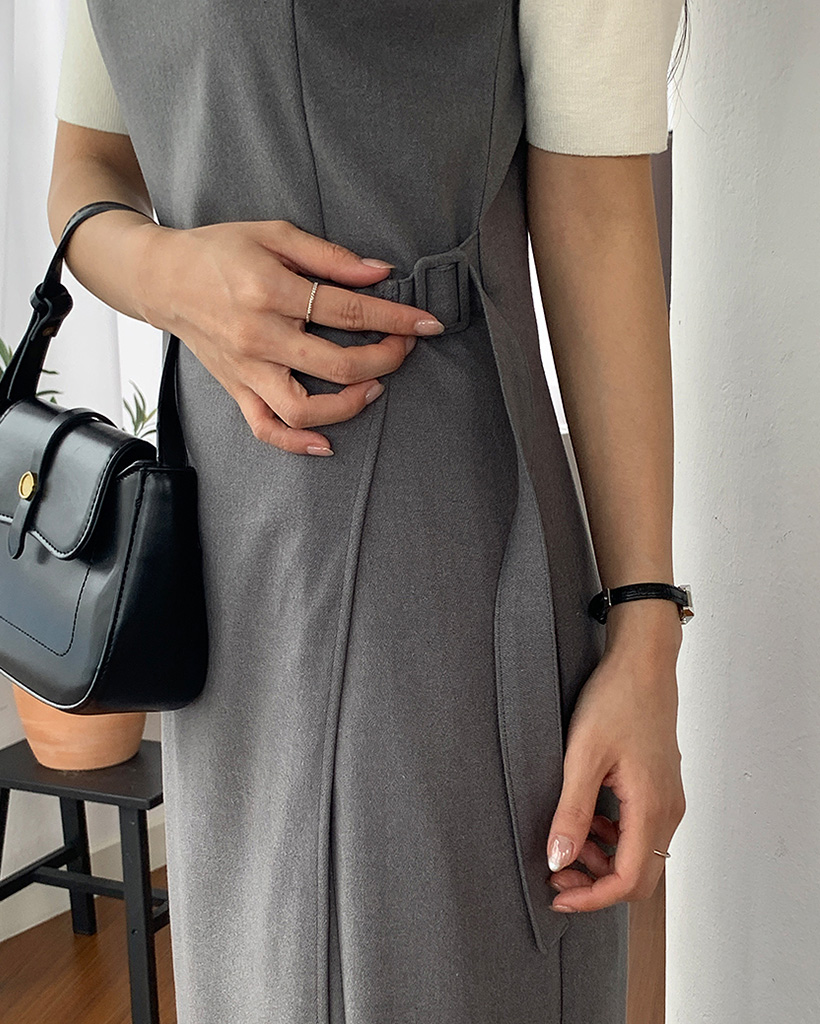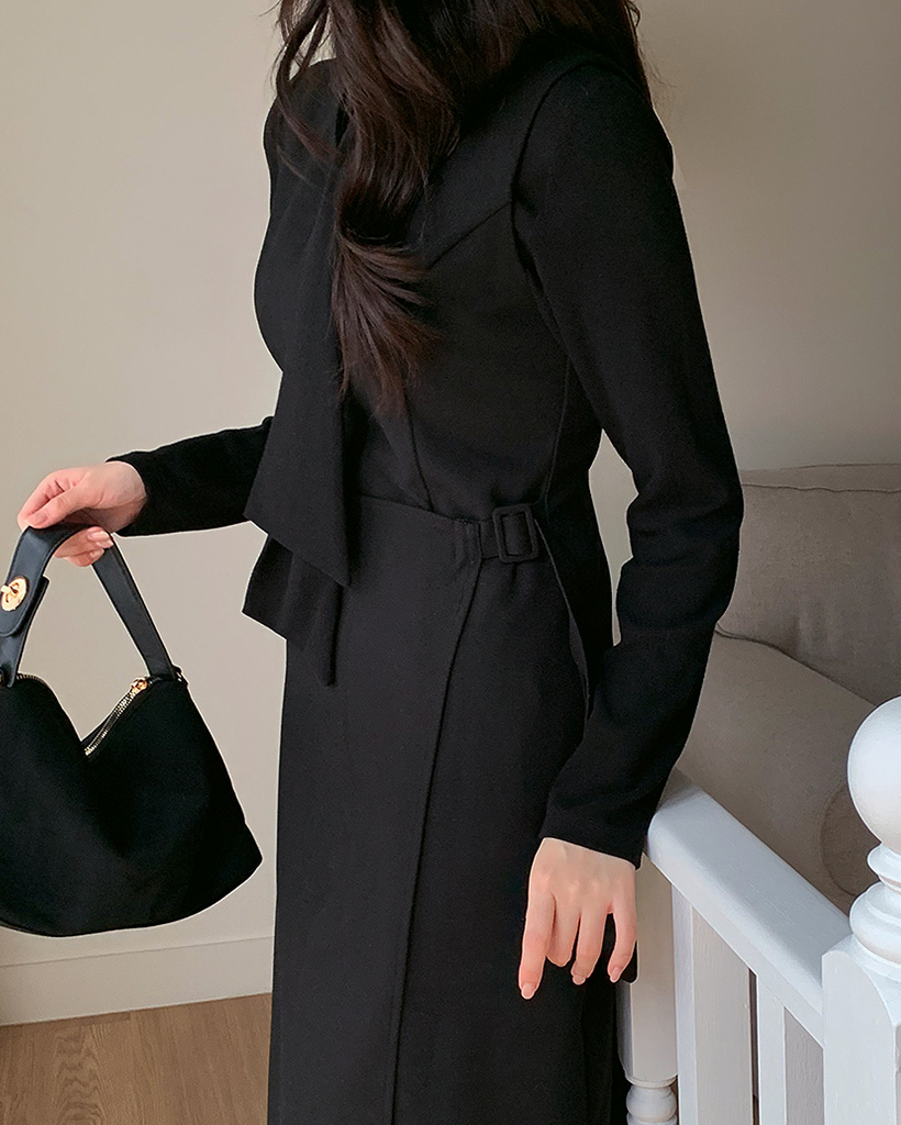 起毛ラップスタイルベルト付きビスチェロングドレスワンピース