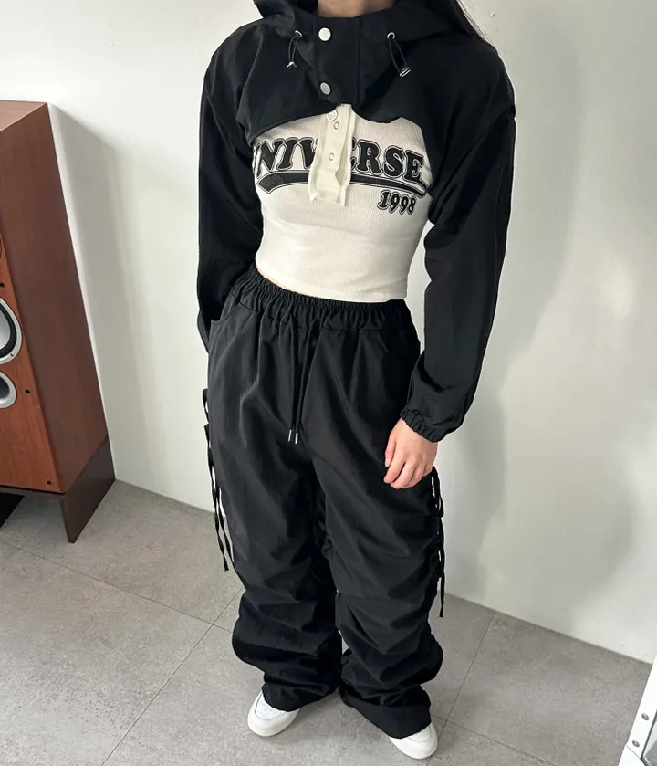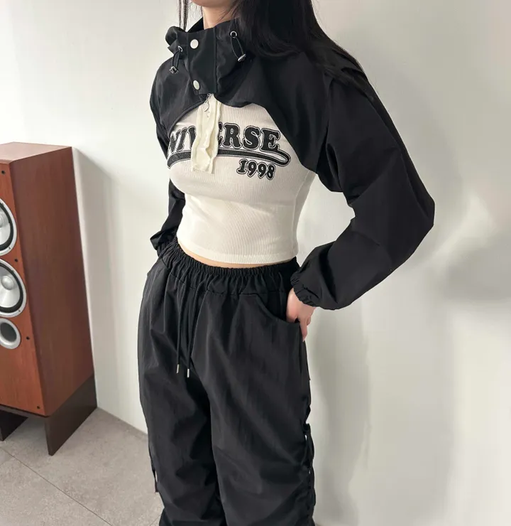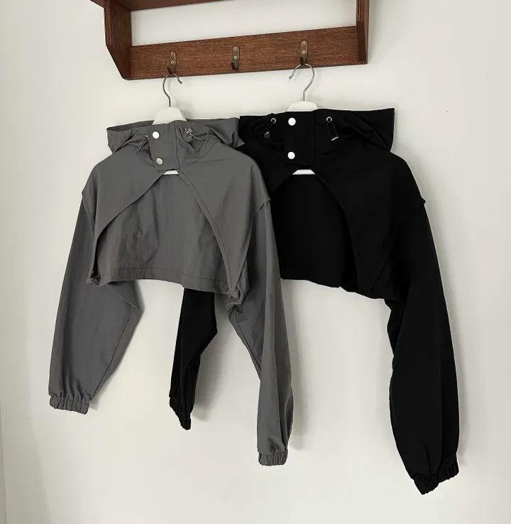 ツーボタンクロップド長袖ボレロパーカー(2color)