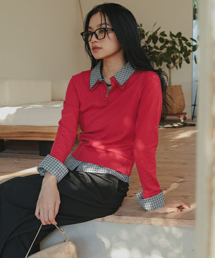 シャツレイヤード風ポロニット