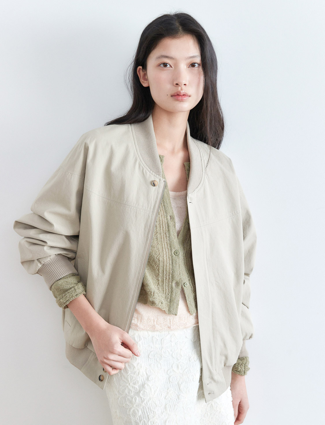 COTTON STITCH BLOUSON JUMPER [ BEIGE ]