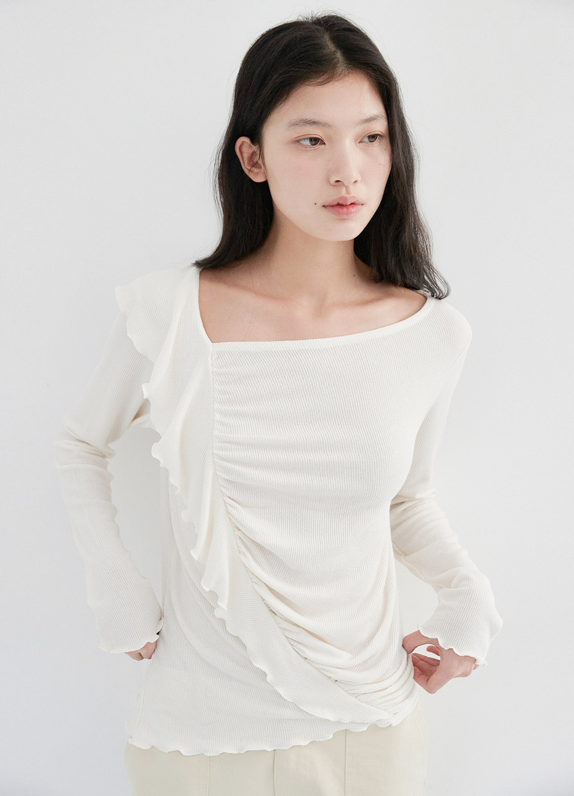 JERSEY SHIRRING DRESS [ CREAM ]
