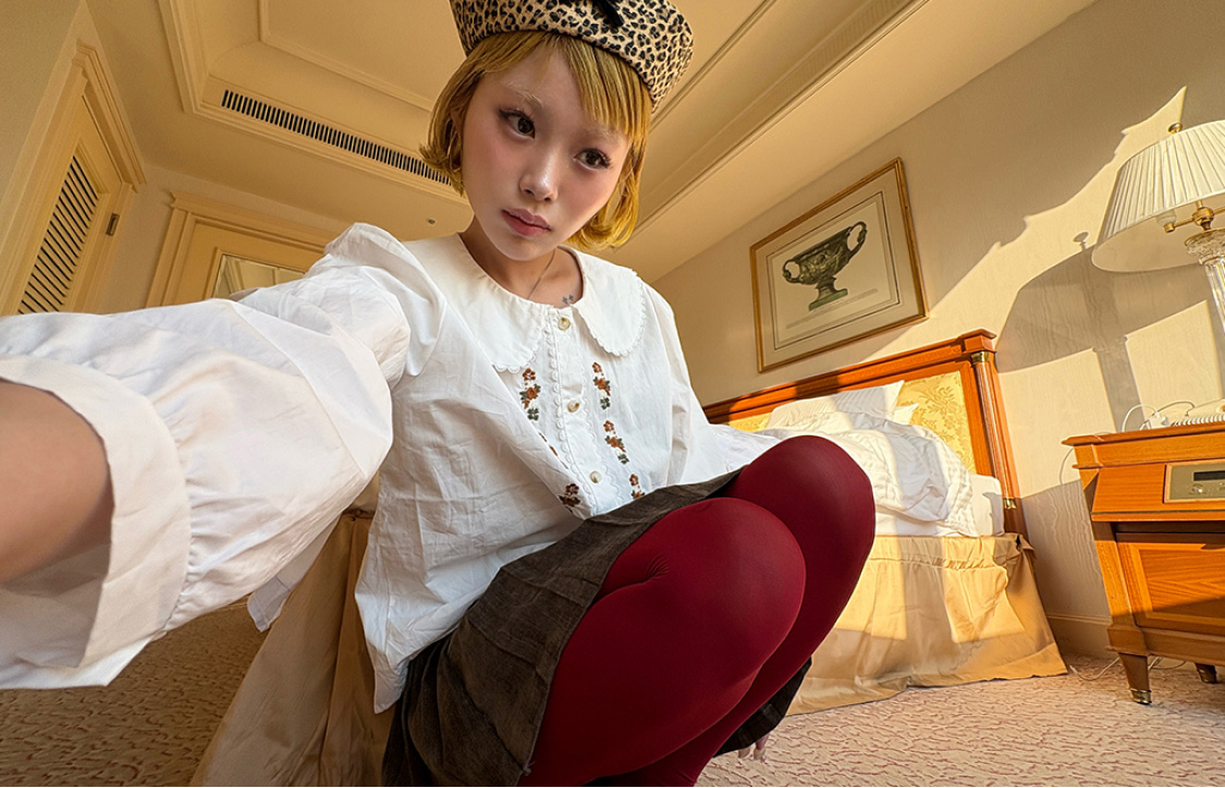 タイセットレースジュエルネックミニフラワーリブロングTシャツ