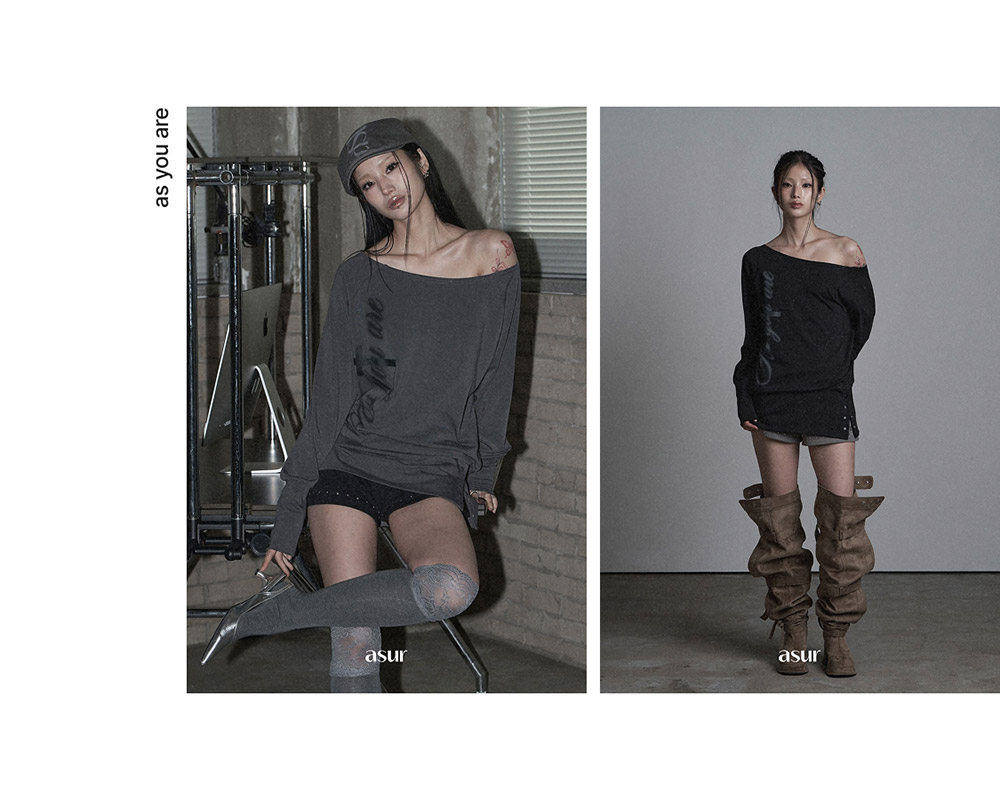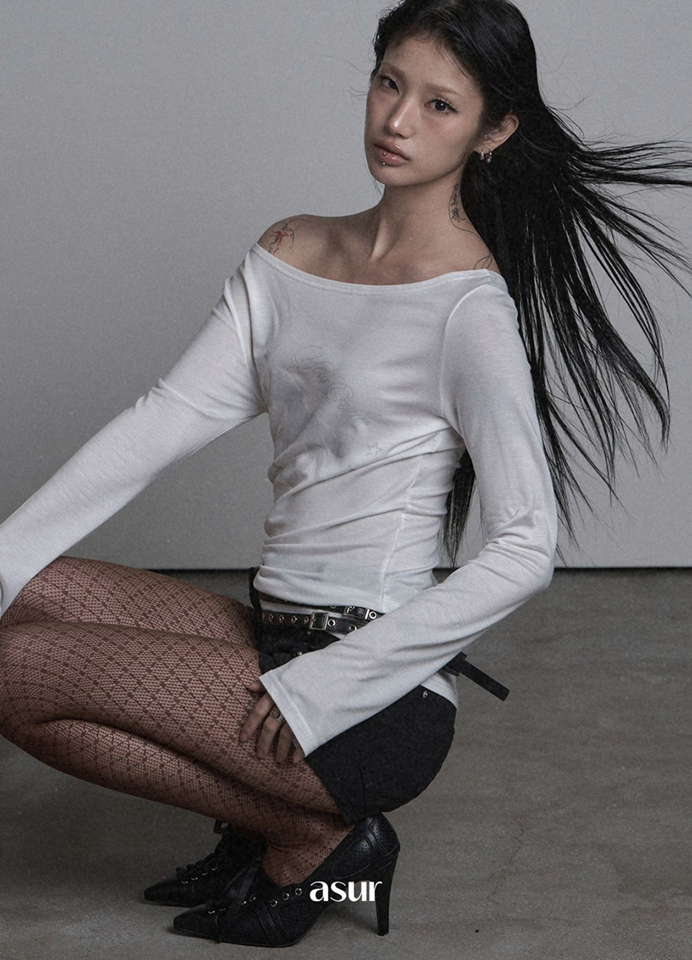 CUT-OUT PIERCING LONG SLEEVE CHARCOAL