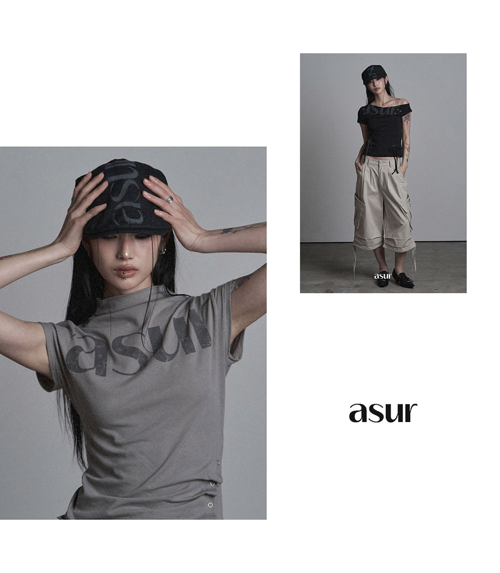 CROSS LINE OFF-SHOULDER T-SHIRT CHARCOAL