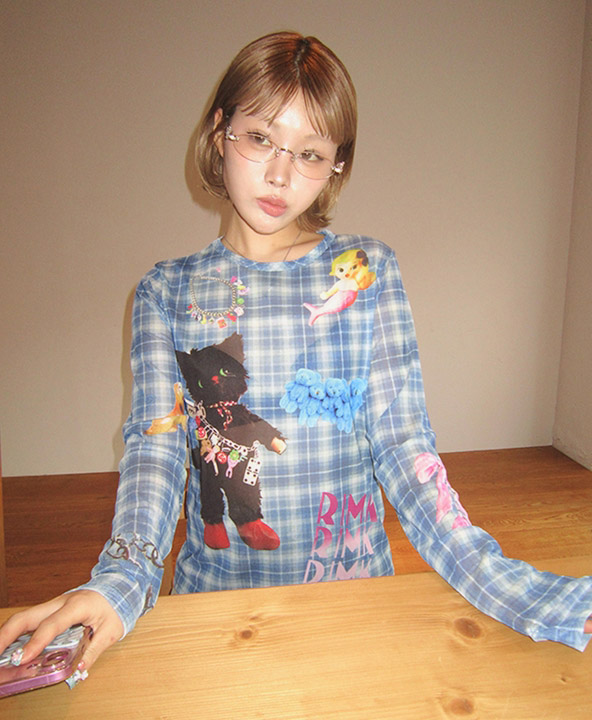 チェックロングTシャツ -