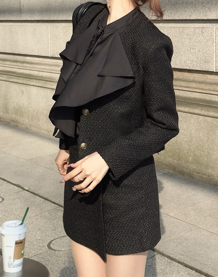 (ORIGINAL) Vネックゴールドボタンツイードジャケット