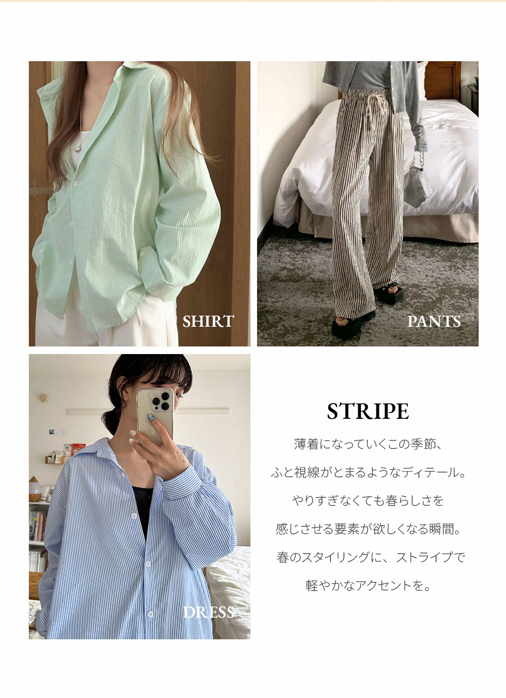 [1回再販](ORIGINAL) ネックポイントストライプオーバーフィットシャツ(beige)