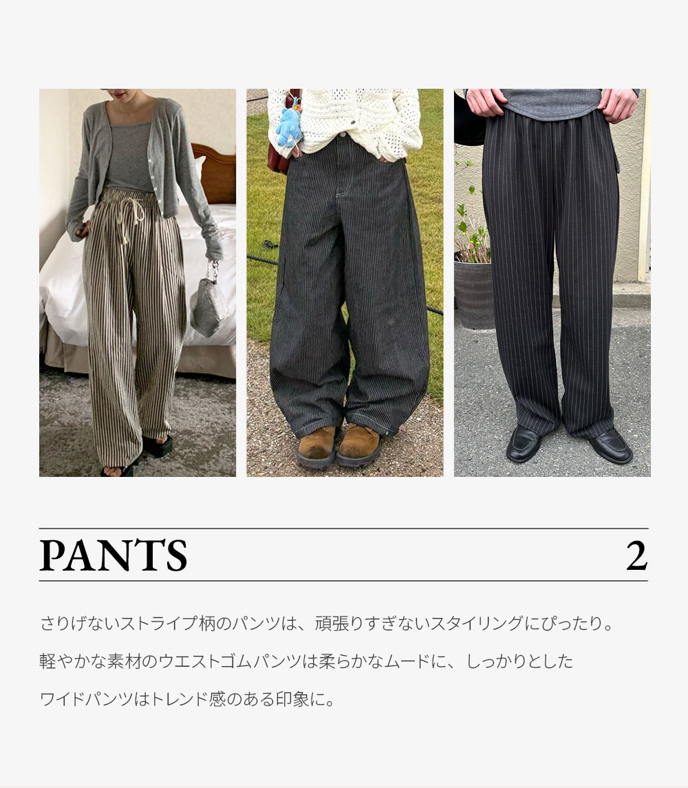 [累計販売2,000本]ストライプワイドイージーパンツ