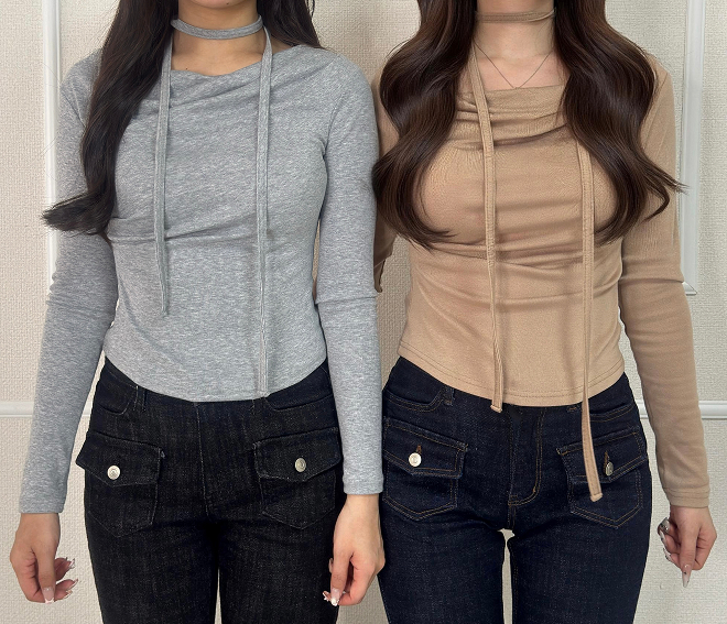[5回再販](ORIGINAL) 3ウェイドレープネックTシャツ (ロングスリーブ)