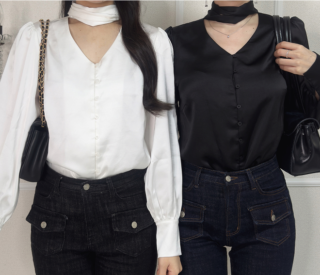 [4回再販](ORIGINAL) スリムラインレースアップシャツ