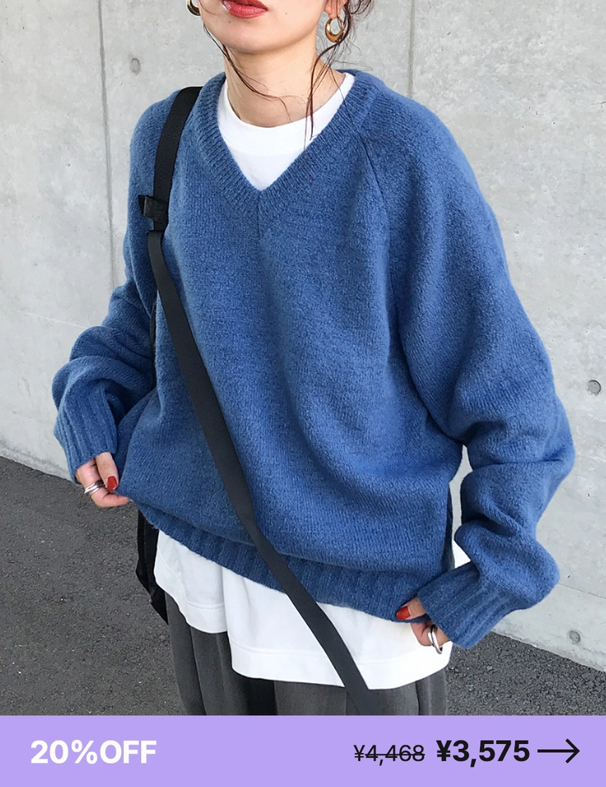 Vネックルーズフィットローゲージニット