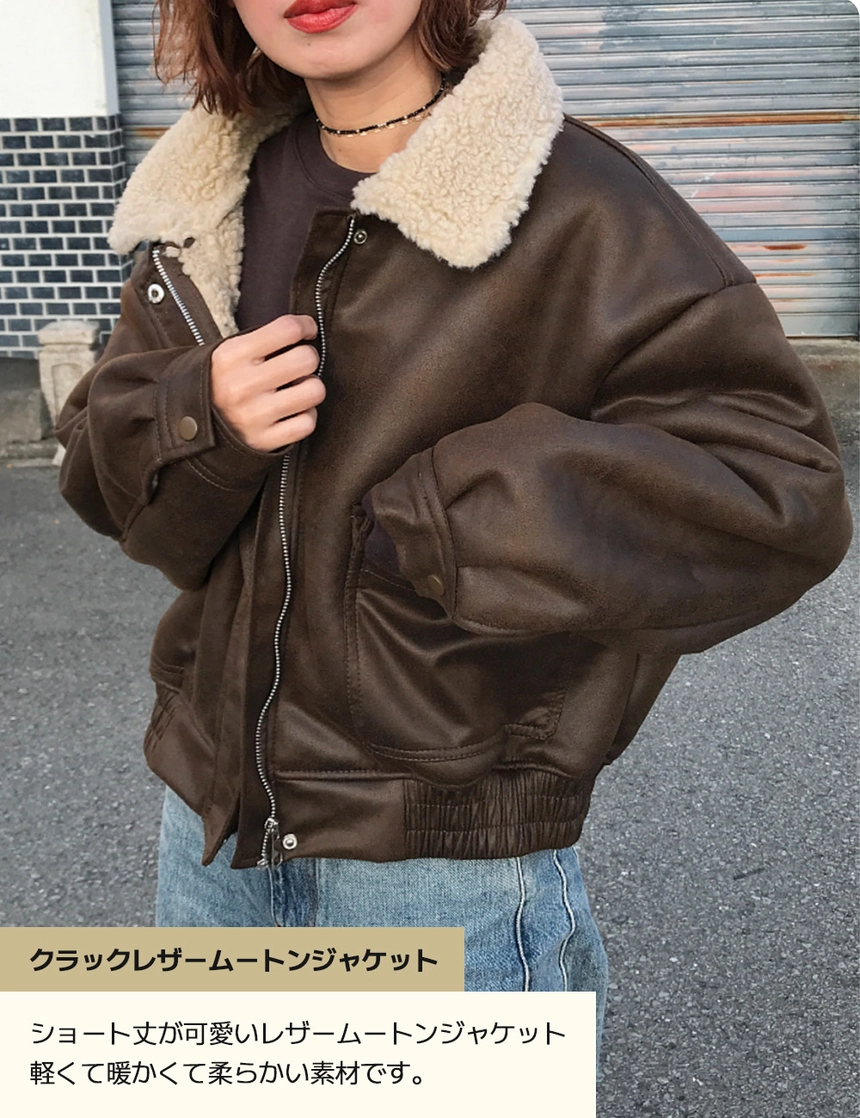 [BEST 50]クラックレザームートンジャケット