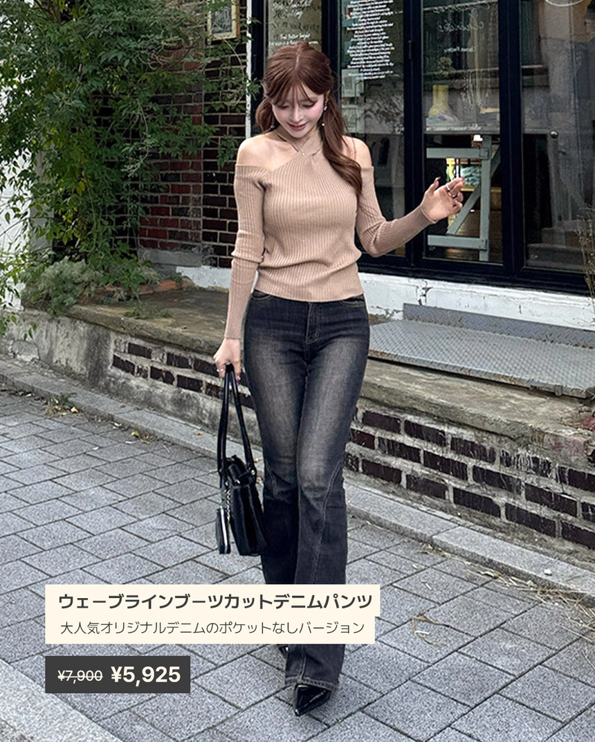 [BEST 50][6回再販](ORIGINAL) ウェーブラインブーツカットデニムパンツ