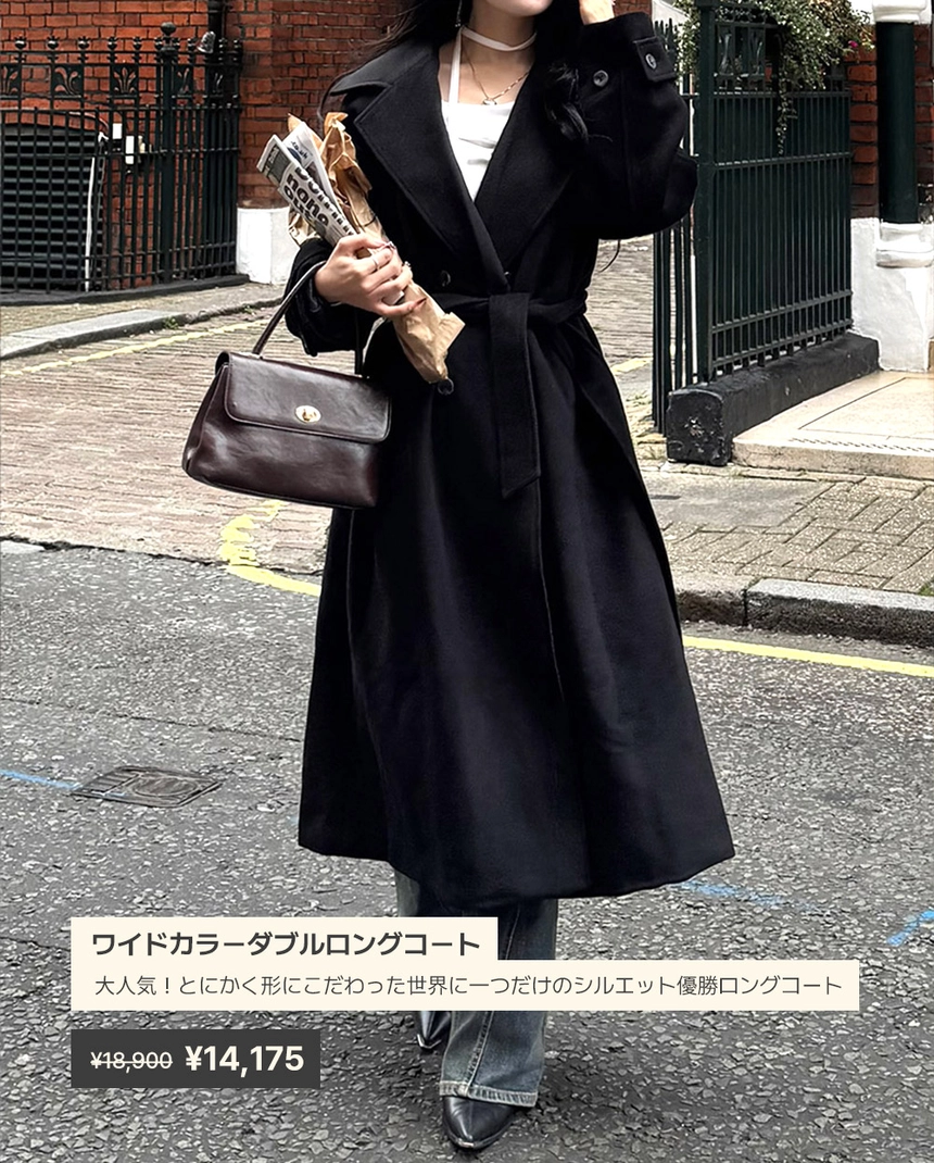 [BEST 50][2回再販](ORIGINAL) ワイドカラーダブルロングコート