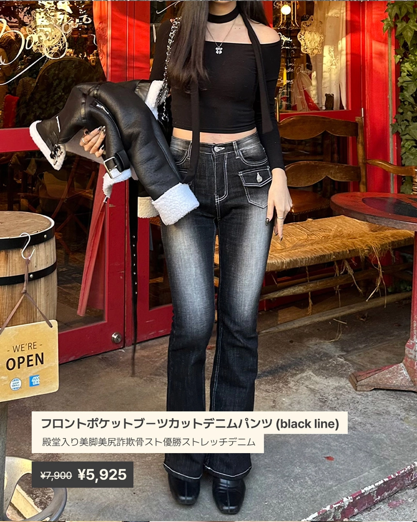 [18回再販](ORIGINAL) フロントポケットブーツカットデニムパンツ (black line)