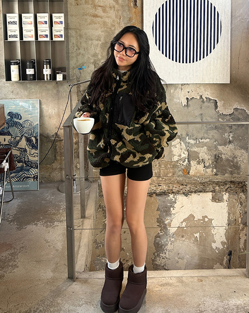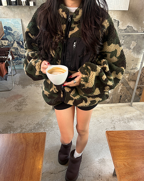 (ユニセックス)カモフラージュスクエアポケットボアブルゾン