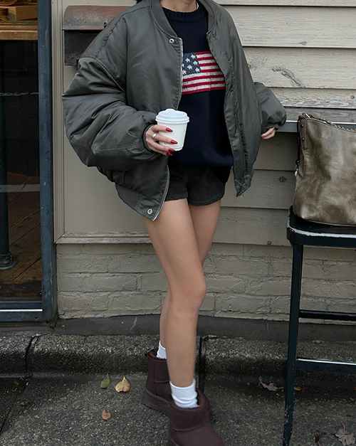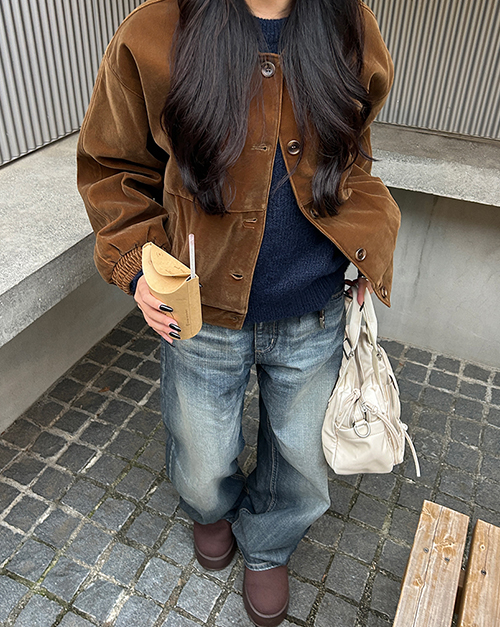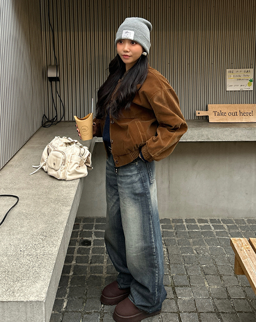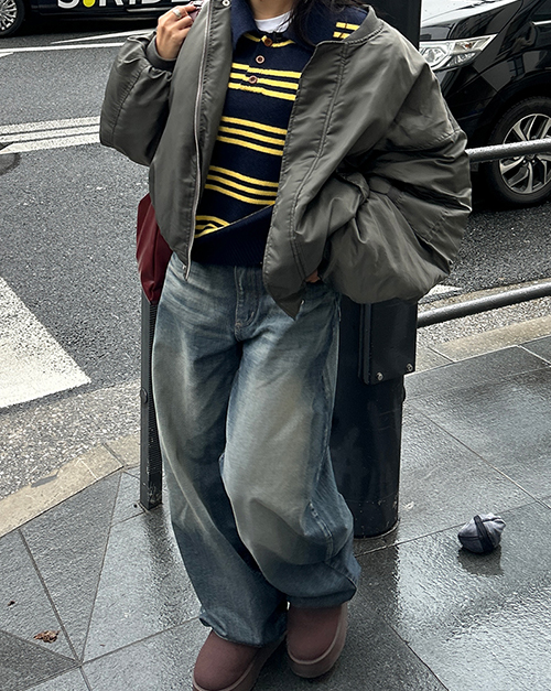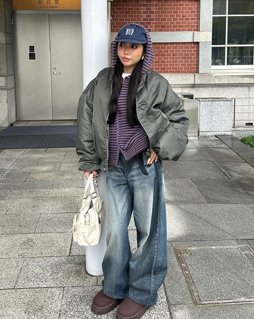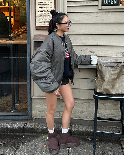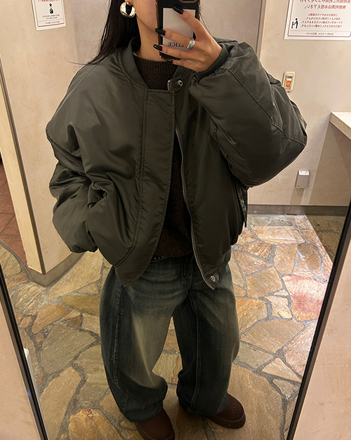 (ユニセックス)ボアカラーループボタンフライトジャケット