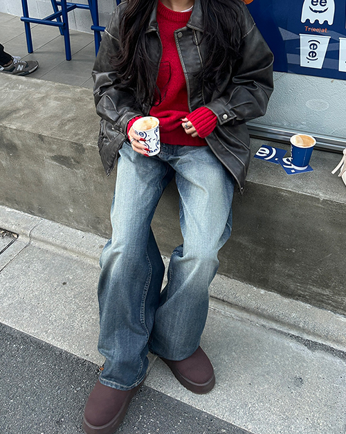 (ユニセックス)アメリンカンVネックバルーンスリーブセーター