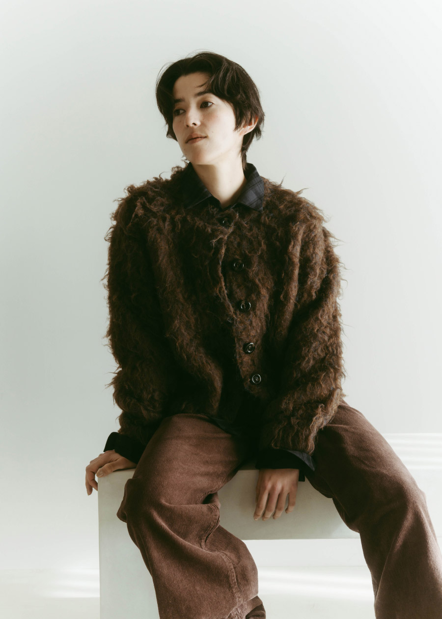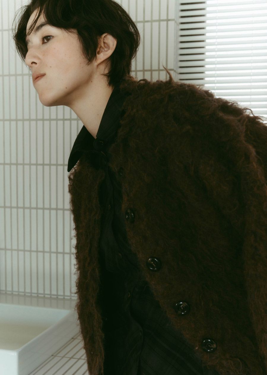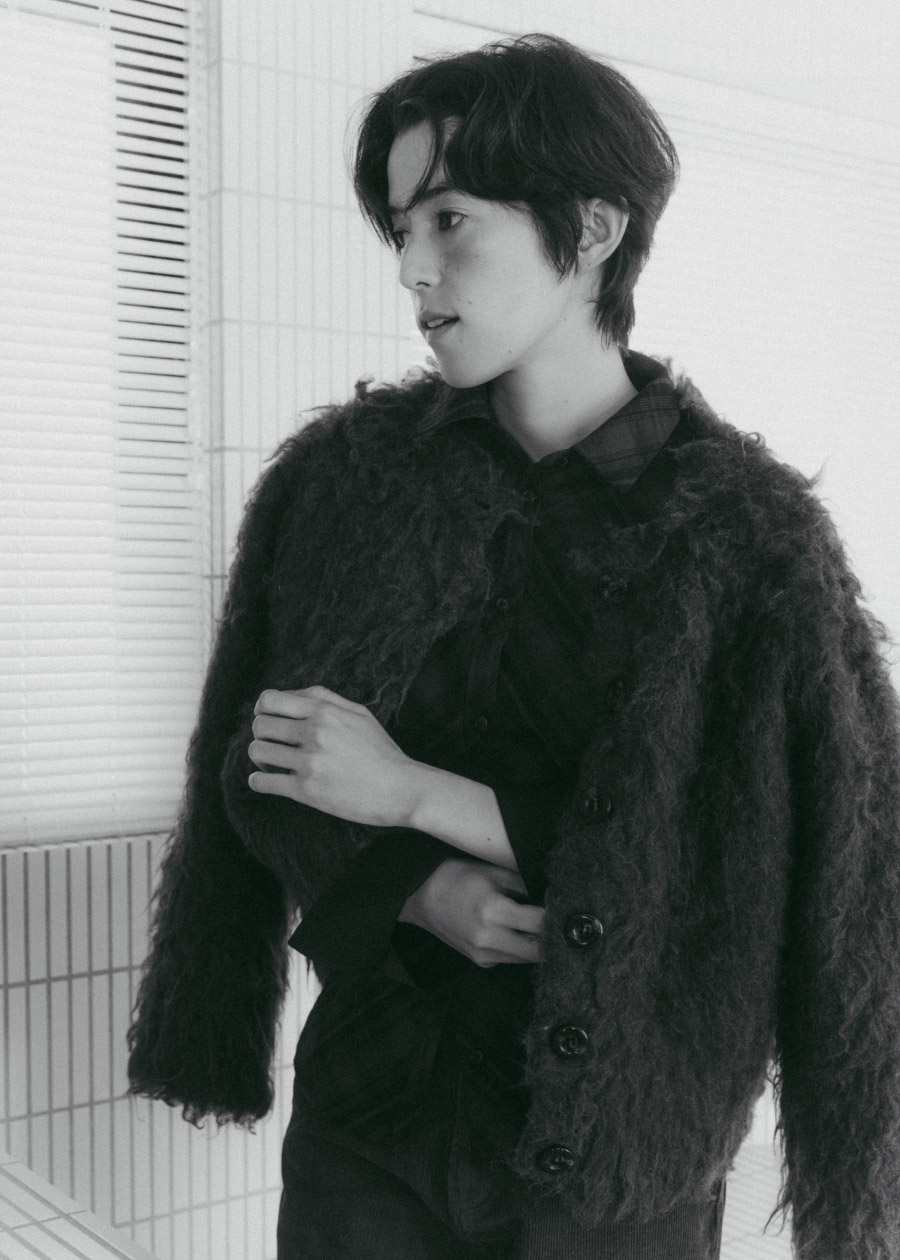 ブラウンのシャギーカーディガンとパンツで、穏やかなムードを軸に。ヘアリーなニットと素材感の違ったボトムスと合わせてワントーンコーデに仕上げ、大人っぽい印象に。シャツのタータンチェック柄とムートンミュールで、さりげなくバランスを整えて。