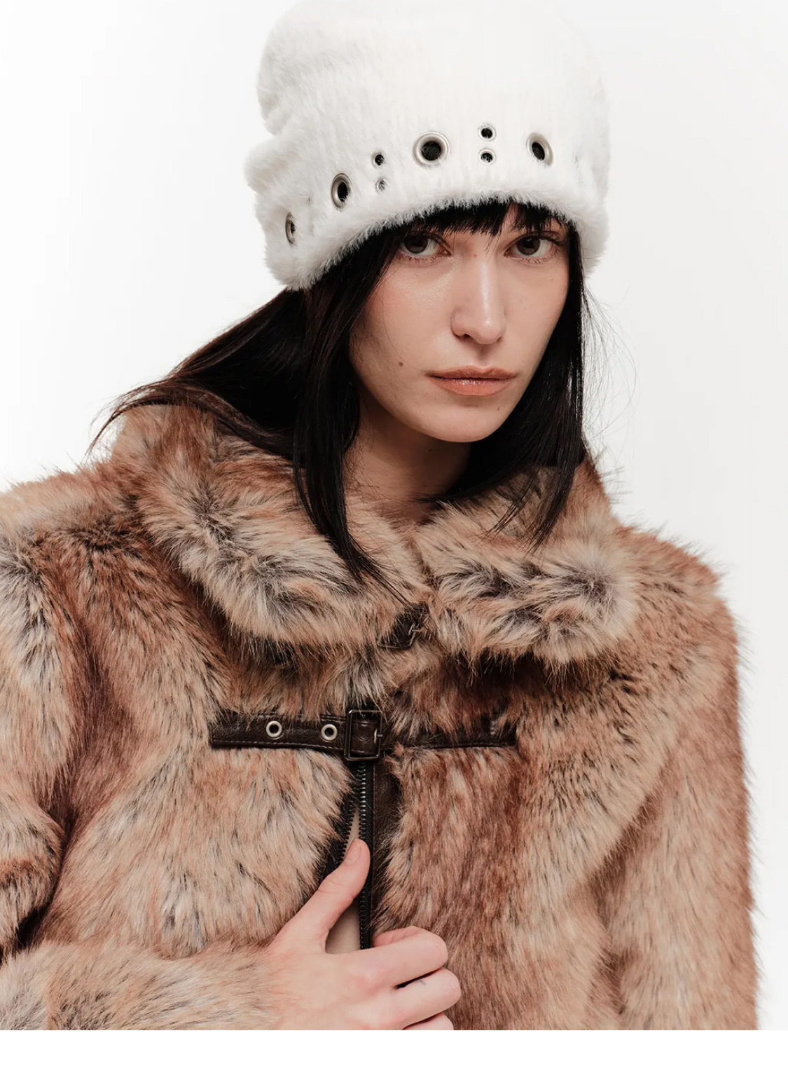 CRUCIA FUR HOODIE ZIP UP (IVORY)