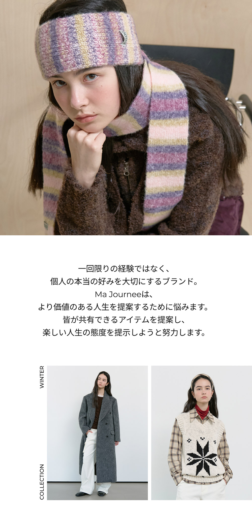 MUFFLER SET STRIPE CARDIGAN_MINT/BROWN