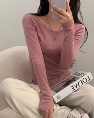 パステルカラーラウンドネック長袖Tシャツ