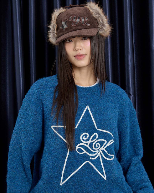 Corduroy Check Applique Trooper Cap