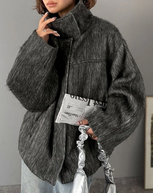 リサイクル素材×ヘアリー質感。ガーリーなコクーンシルエットで、お出かけに◎