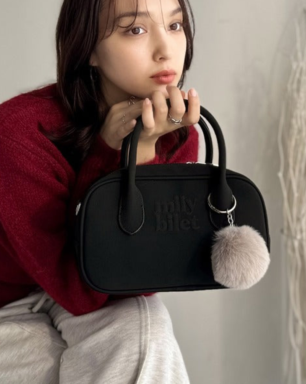 【mily bilet】甘い見た目で実力派♪エンボスロゴスウェードライクミニボストンバッグ mi1179059